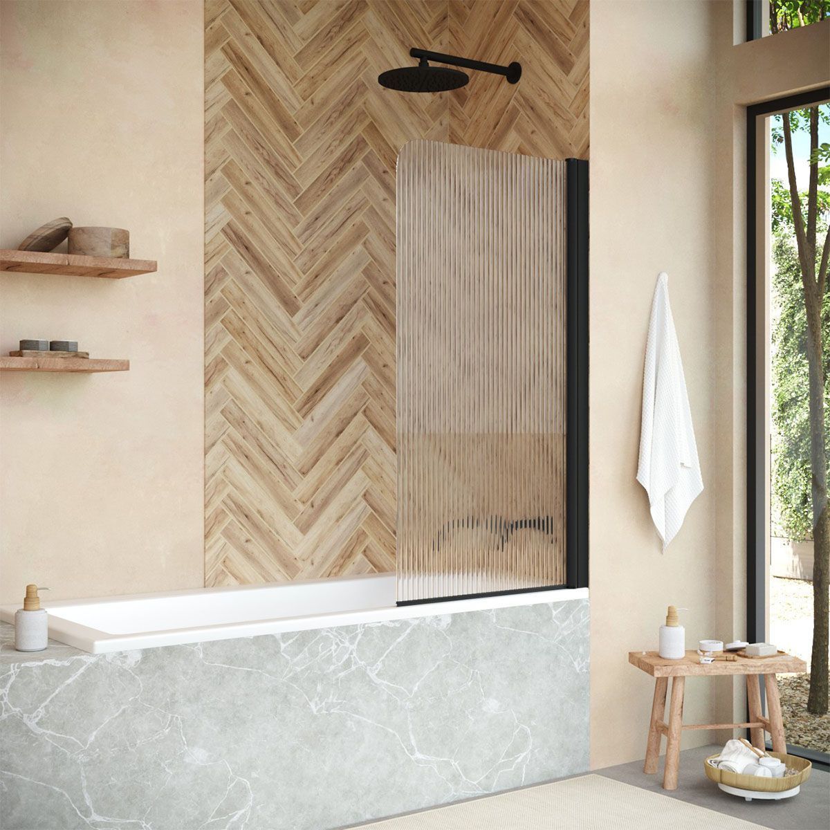 —Душевая шторка на ванну Vegas-Glass EV+EV NOVO EV NOVO 70 02М Moru R 70х140 стекло рифленое профиль черный ориентация правая