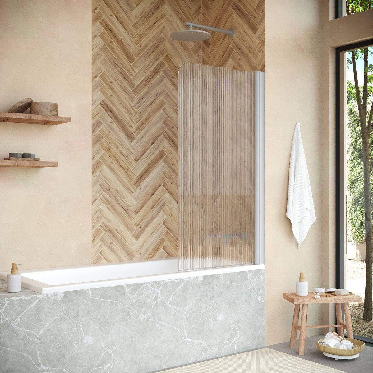 —Душевая шторка на ванну Vegas-Glass EV+EV NOVO EV NOVO 70 07 Moru R 70х140 стекло рифленое профиль хром ориентация правая