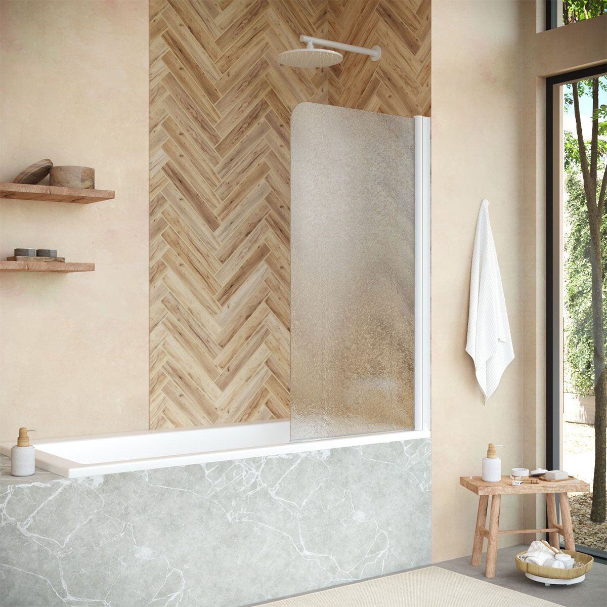 —Душевая шторка на ванну Vegas-Glass EV+EV NOVO EV NOVO 76 01 02 R 75х140 стекло рифленое профиль белый ориентация правая