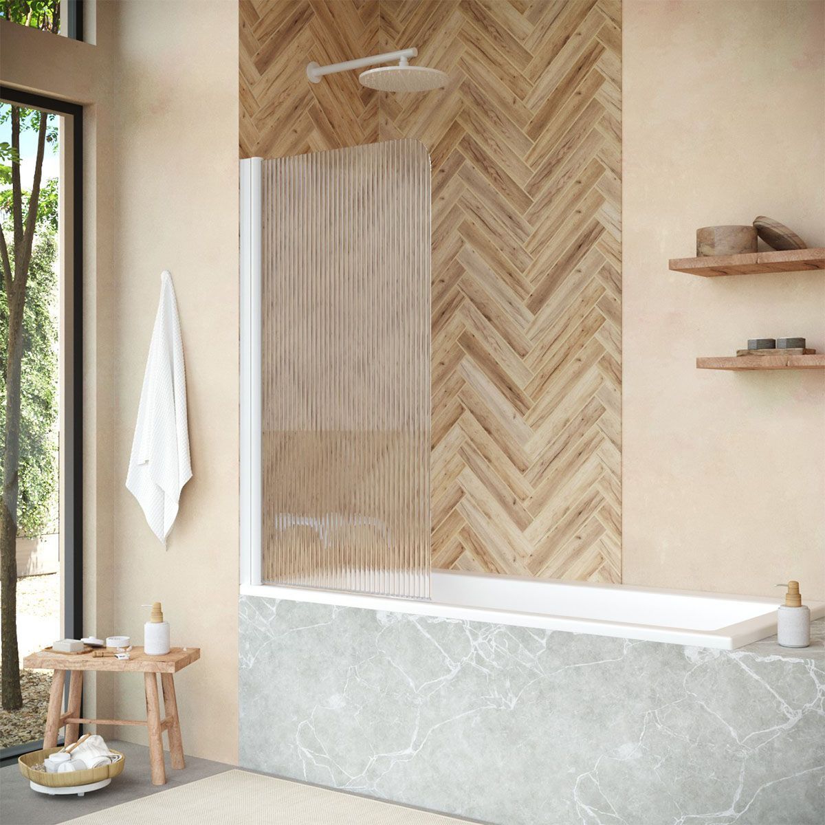—Душевая шторка на ванну Vegas-Glass EV+EV NOVO EV NOVO 76 01 Moru L 75х140 стекло рифленое профиль белый ориентация левая