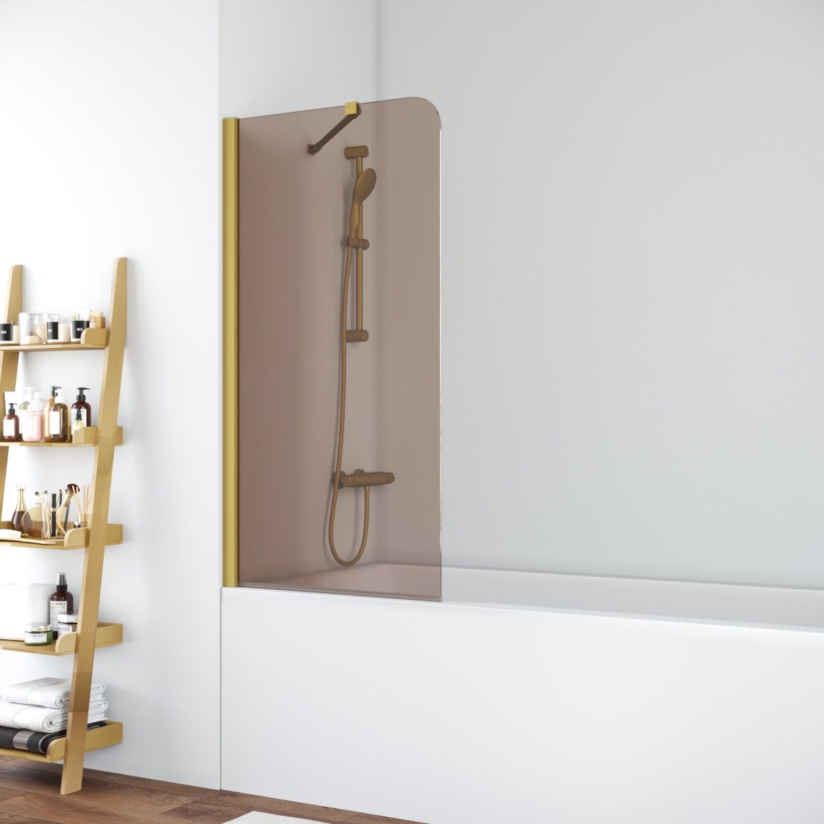 —Душевая шторка на ванну Vegas-Glass EV+EV NOVO ST EV ST NOVO 76 03 05 75х140 стекло тонированное профиль золото ориентация универсальная
