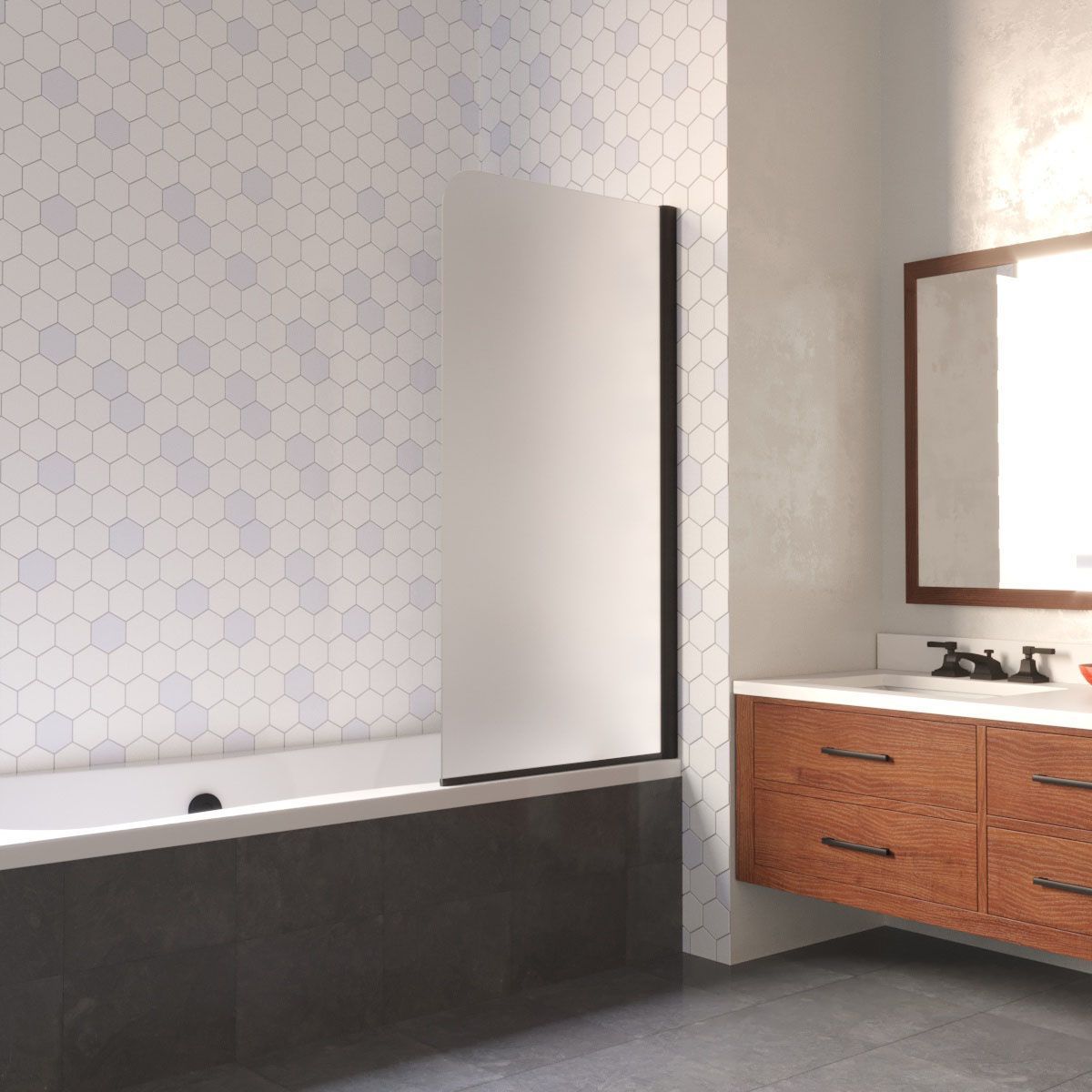—Душевая шторка на ванну Vegas-Glass EV LUX EV LUX 60 02М 10 R 60х150 стекло матовое профиль черный ориентация правая