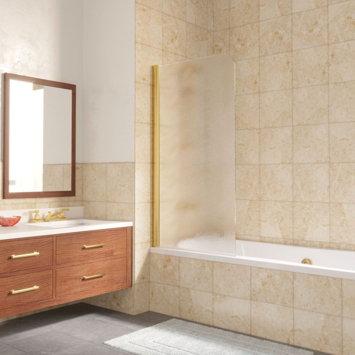 —Душевая шторка на ванну Vegas-Glass EV LUX EV LUX 60 09 02 L 60х150 стекло рифленое профиль золото ориентация левая