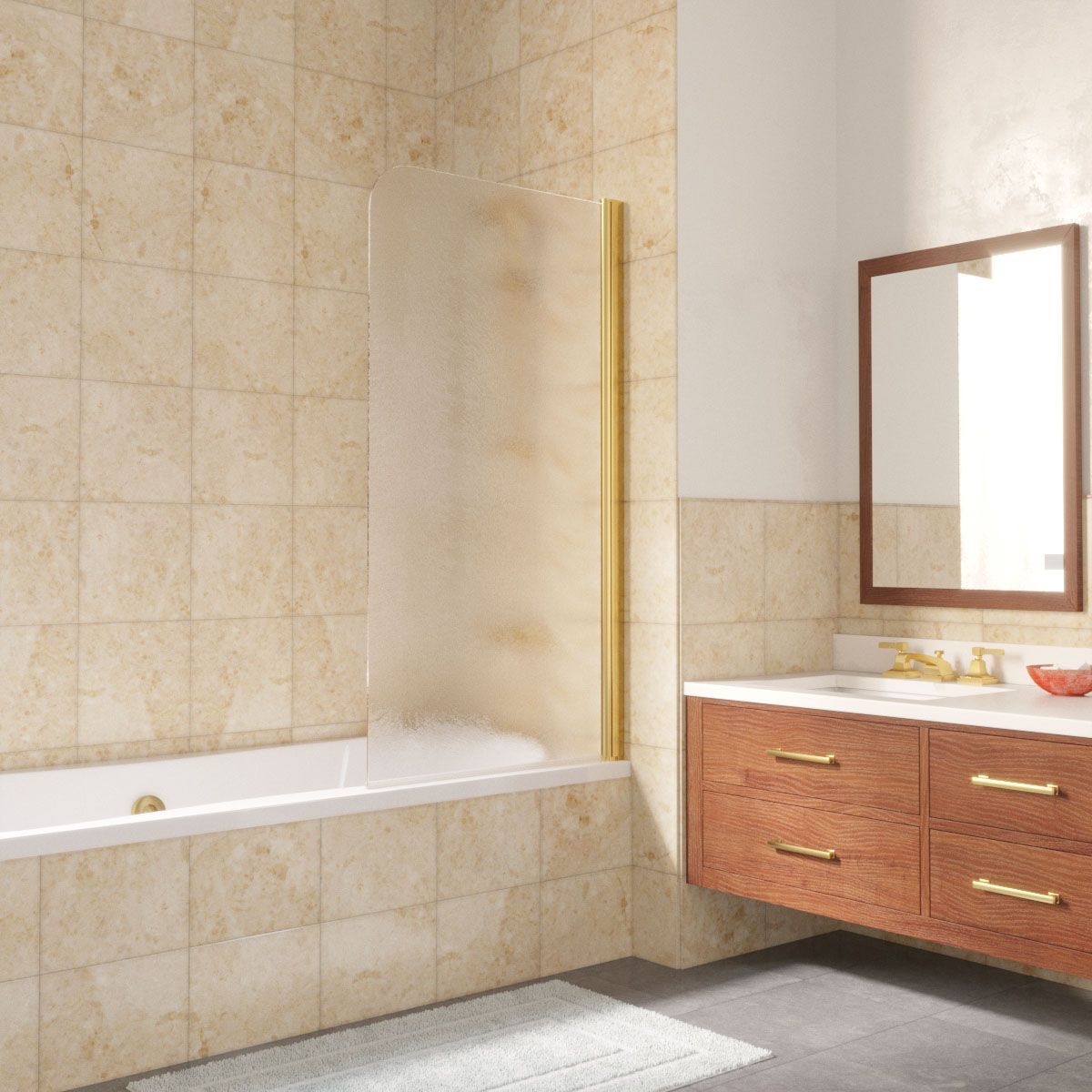 —Душевая шторка на ванну Vegas-Glass EV LUX EV LUX 60 09 02 R 60х150 стекло рифленое профиль золото ориентация правая