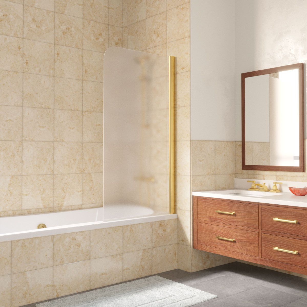 —Душевая шторка на ванну Vegas-Glass EV LUX EV LUX 60 09 10 R 60х150 стекло матовое профиль золото ориентация правая