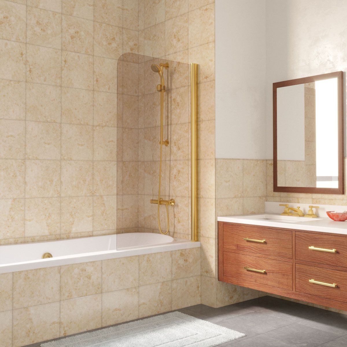 —Душевая шторка на ванну Vegas-Glass EV LUX EV LUX 70 09 05 R 70х150 стекло тонированное профиль золото ориентация правая