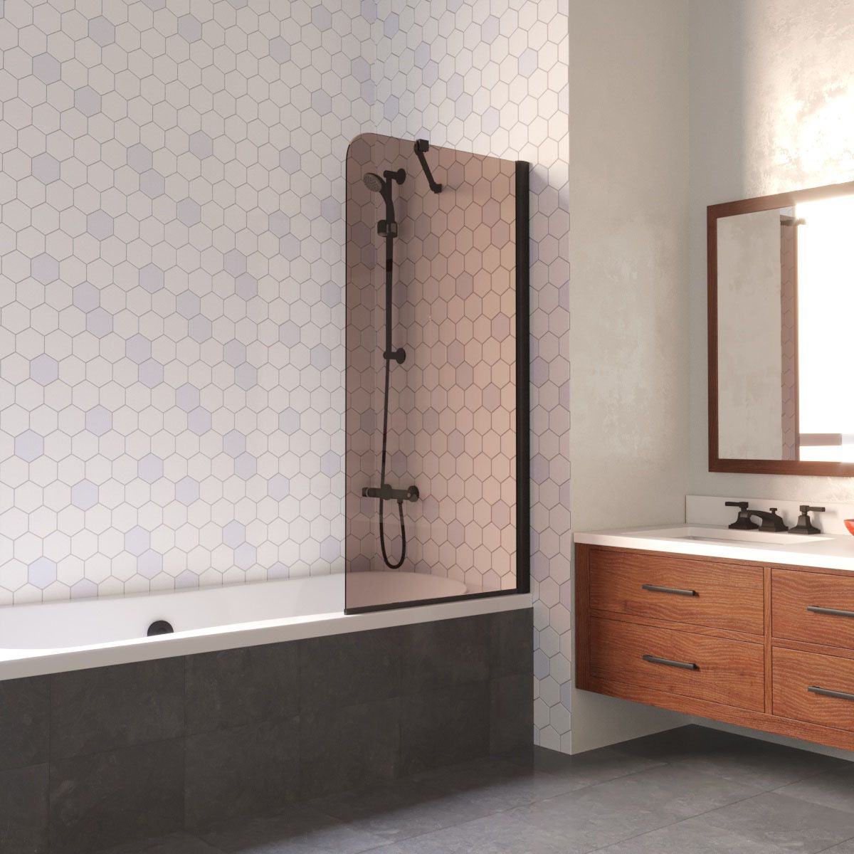 —Душевая шторка на ванну Vegas-Glass EV LUX ST EV LUX ST 76 02М 05 R 75х150 стекло тонированное профиль черный ориентация правая