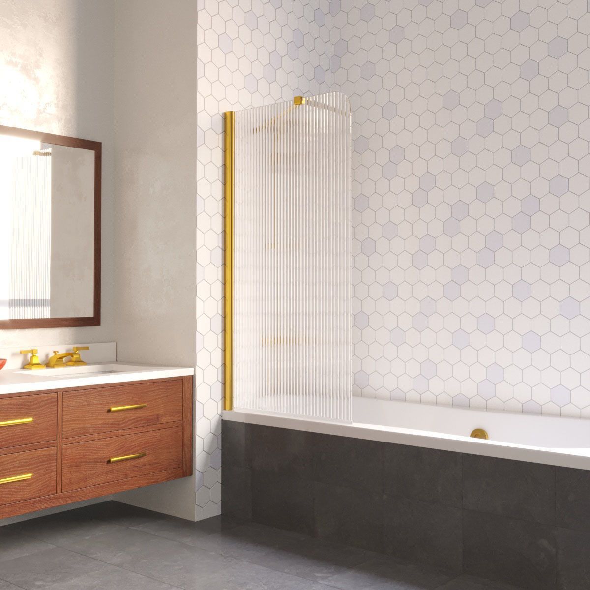 —Душевая шторка на ванну Vegas-Glass EV LUX ST EV LUX ST 76 09 Moru L 75х150 стекло рифленое профиль золото ориентация левая