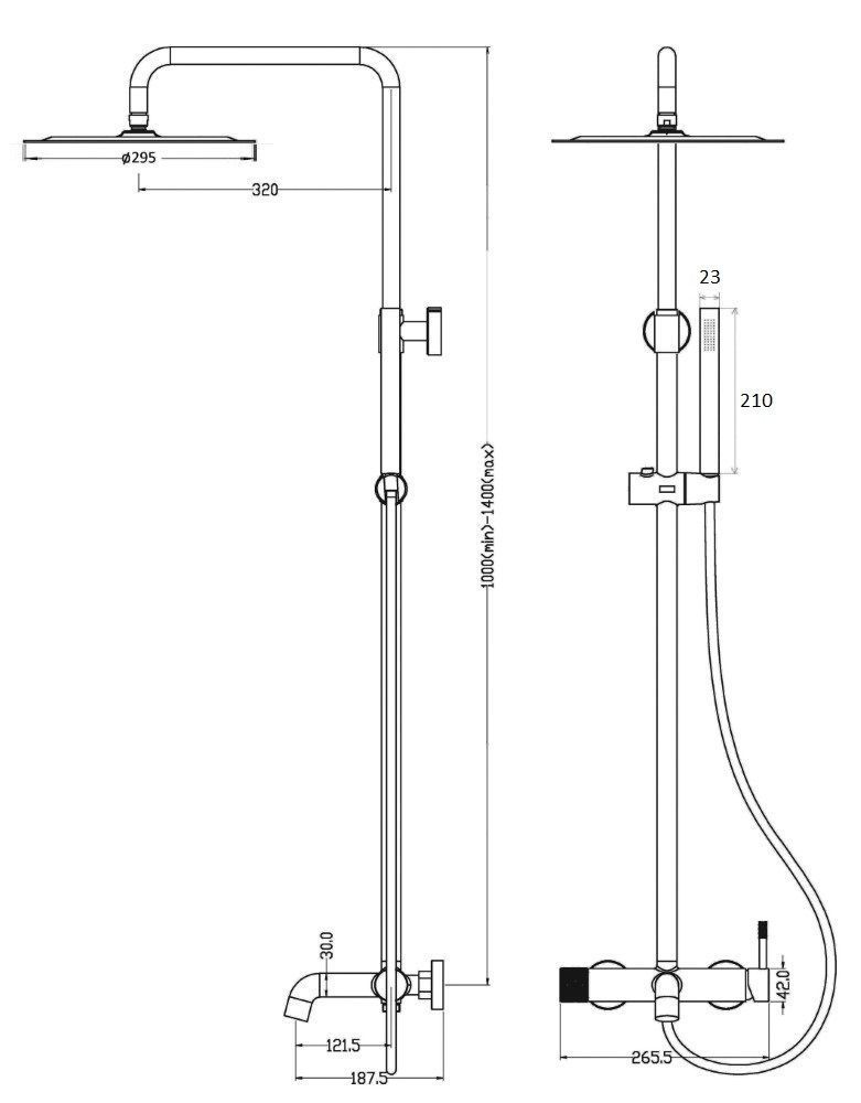 Вылет верхнего душа, см