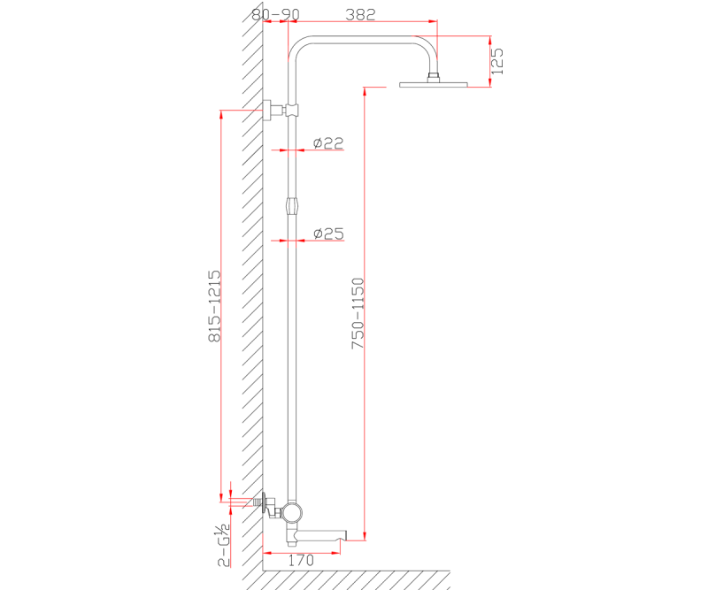 Вылет верхнего душа, см
