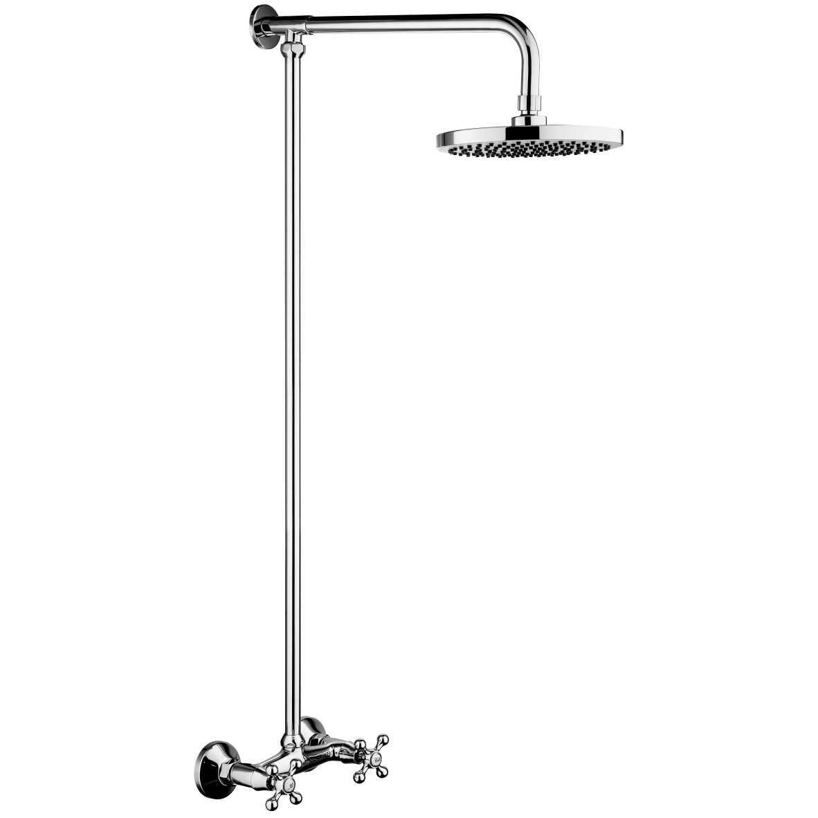 A2308 душевая стойка хром смеситель душевой двухвентильный: латунь кранбуксы с керамическими пластинами: 20 шлицов, 180° установочный комплект + штанга: сталь SUS201, H=920 мм верхняя лейка: ABS, D=200 мм шланг: 1500 мм, оплётка сталь SUS201