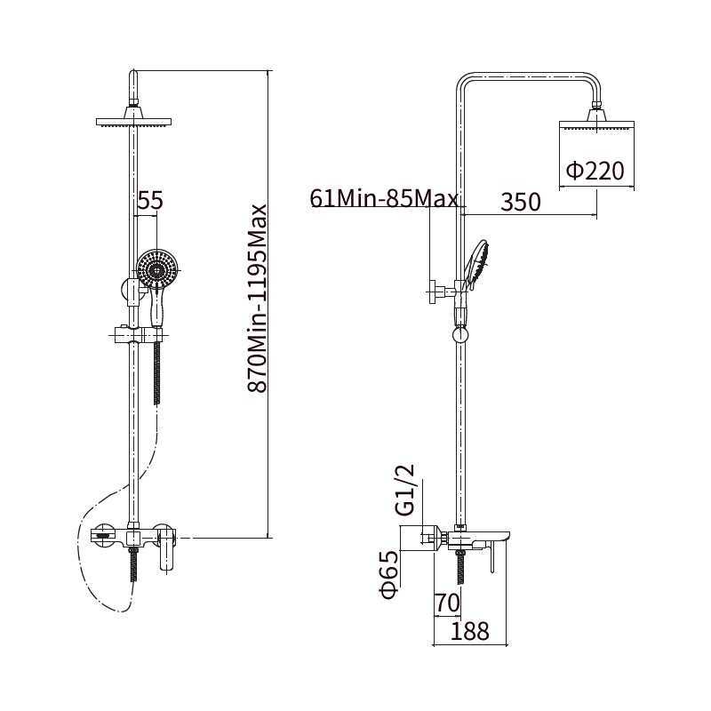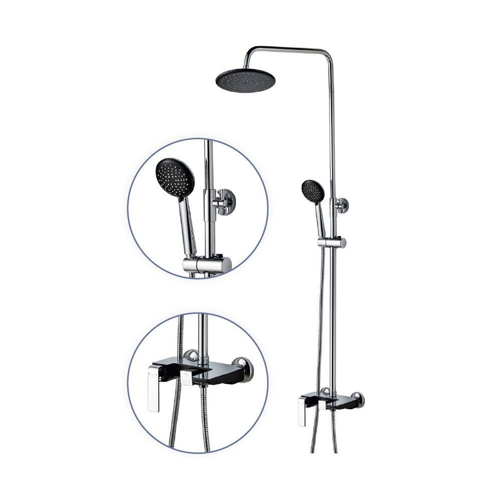 A2451-7 душевая стойка хром/чёрная смеситель: латунь, картридж D=35 мм, хром/чёрный излив: L=118 мм, стационарный дивертор: 3-х ходовой с керамическими пластинами установочный комплект + штанга: сталь SUS201, H=750-1135 мм верхняя лейка: ABS, D=220 мм, хром/чёрная ручная лейка: ABS, D=100 мм, 2 режима, хром/чёрная шланг: 1500 мм, оплётка сталь SUS201, хром