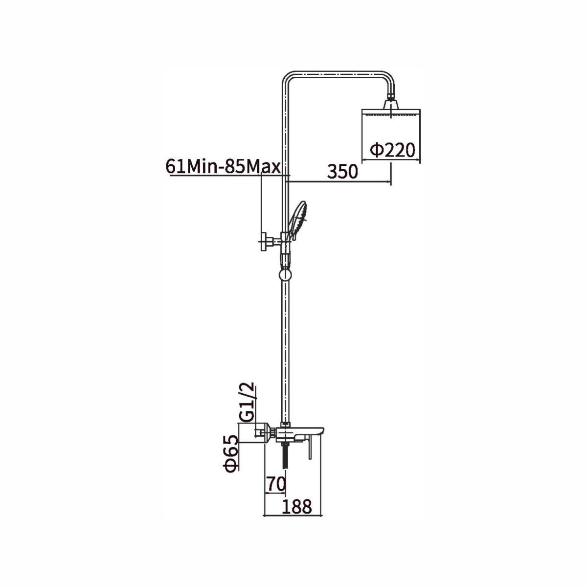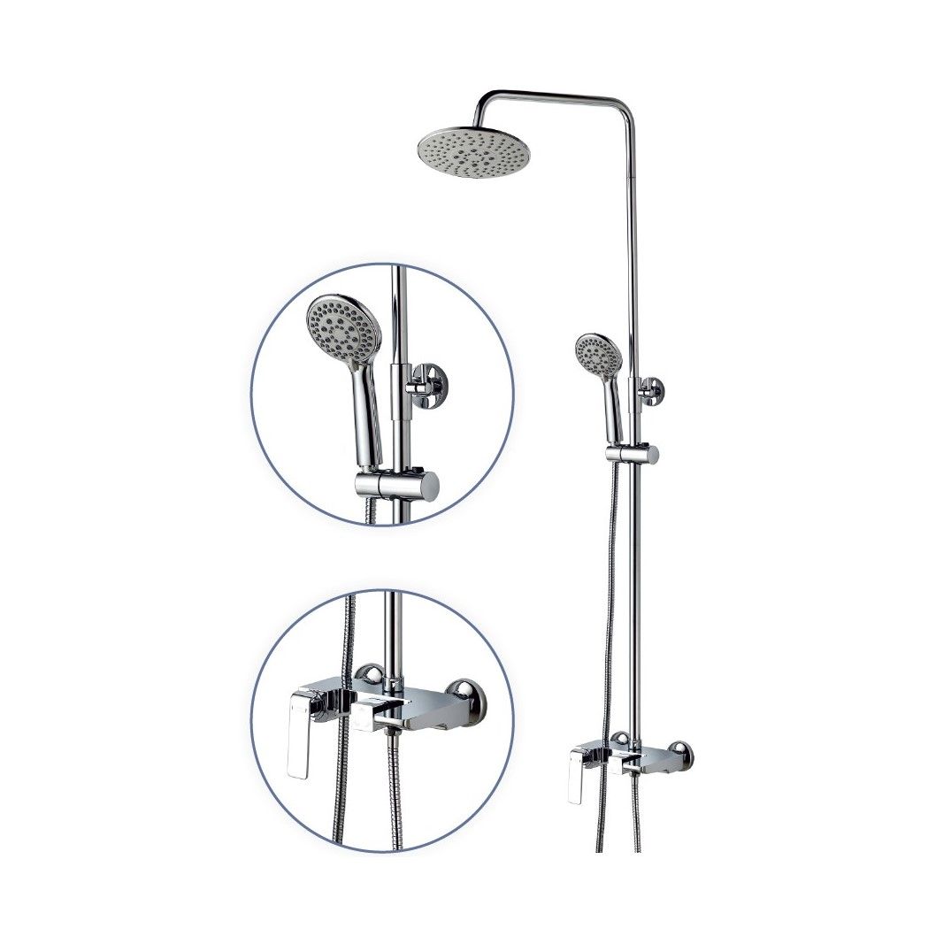 A2451 душевая стойка хром смеситель: латунь, картридж D=35 мм излив: L=118 мм, стационарный дивертор: 3-х ходовой с керамическими пластинами установочный комплект + штанга: сталь SUS201, хром, H=750-1135 мм верхняя лейка: ABS, D=220 мм ручная лейка: ABS, D=100 мм, 3 режима шланг: 1500 мм, оплётка сталь SUS201