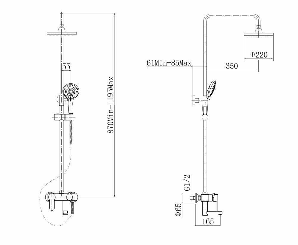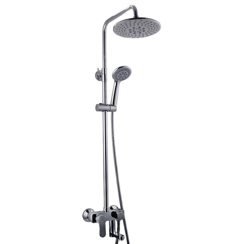 A2453 душевая стойка хром смеситель: латунь, картридж D=35 мм излив: L=112 мм, поворотный дивертор: 3-х ходовой с керамическими пластинами установочный комплект + штанга: сталь SUS201, H=750-1135 мм верхняя лейка: ABS, D=220 мм ручная лейка: ABS, D=100 мм, 3 режима шланг: 1500 мм, оплётка сталь SUS201