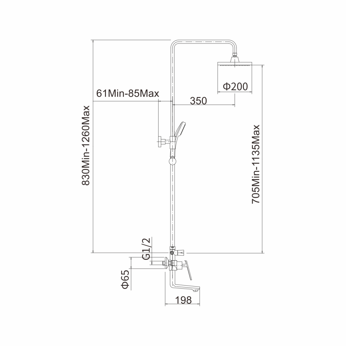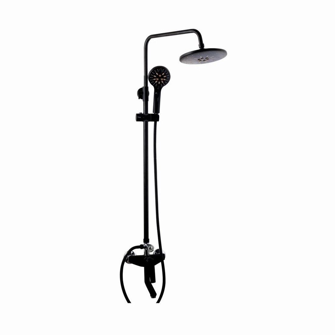 A2481-7 душевая стойка чёрная/хром смеситель: латунь, картридж D=35 мм, чёрный с хромированными дивертором, отражателями и аэратором излив: L=158 мм, поворотный дивертор: 3-х ходовой с керамическими пластинами, хром установочный комплект + штанга: сталь SUS201, H=750-1135 мм, чёрная верхняя лейка: ABS, D=200 мм, чёрная ручная лейка: ABS, D=100 мм, 3 режима, чёрная шланг: 1500 мм, оплётка сталь SUS201, чёрный