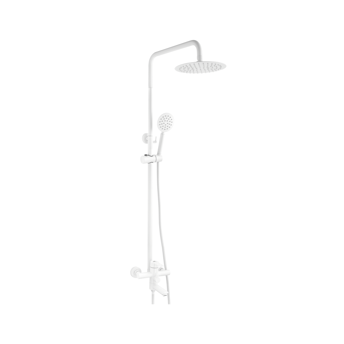 A52401-8A душевая стойка белая смеситель: белый, сталь SUS304, картридж D=35 мм излив: L=102 мм, поворотный, переключение потока дивертор: 2-х ходовой с керамическими пластинами установочный комплект + штанга: белая, сталь SUS304, сатин, H=750-1135 мм верхняя лейка: белая, сталь SUS304, D=200 мм, антикальк ручная лейка: белая, сталь SUS304, D=85 мм, антикальк шланг: белая, 1500 мм, оплётка сталь SUS304