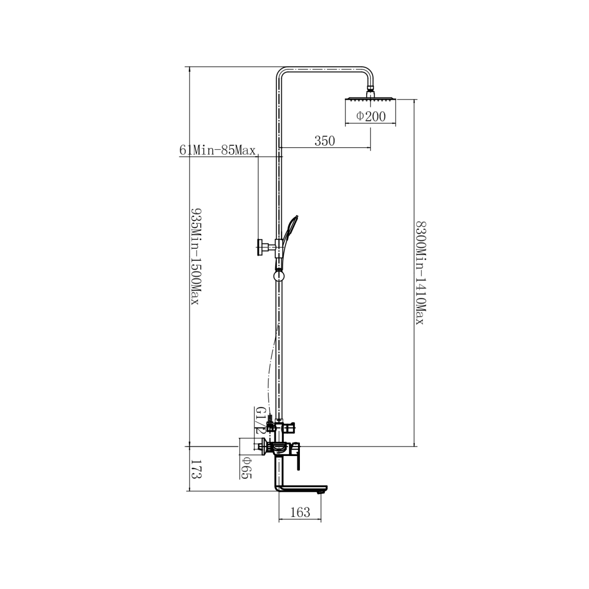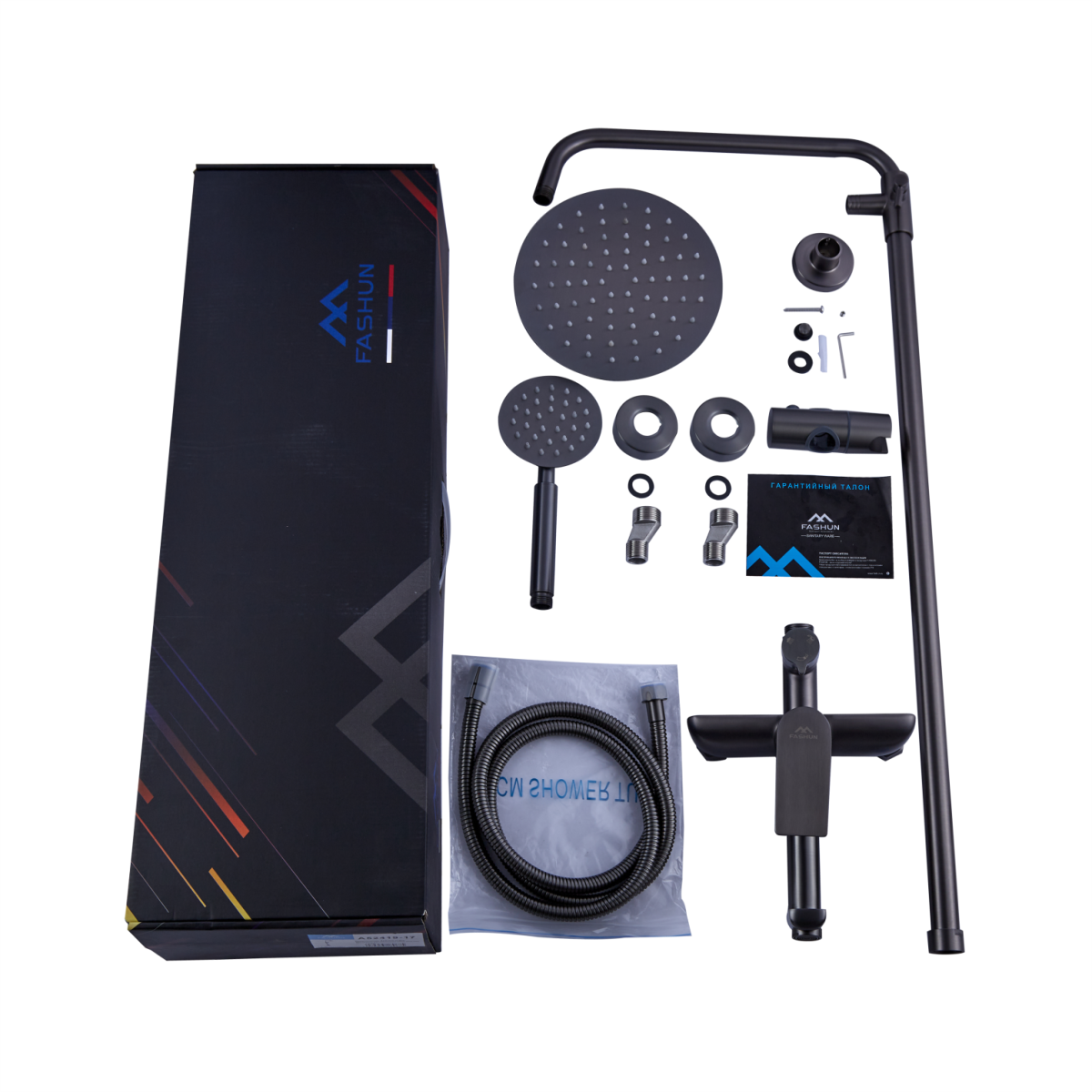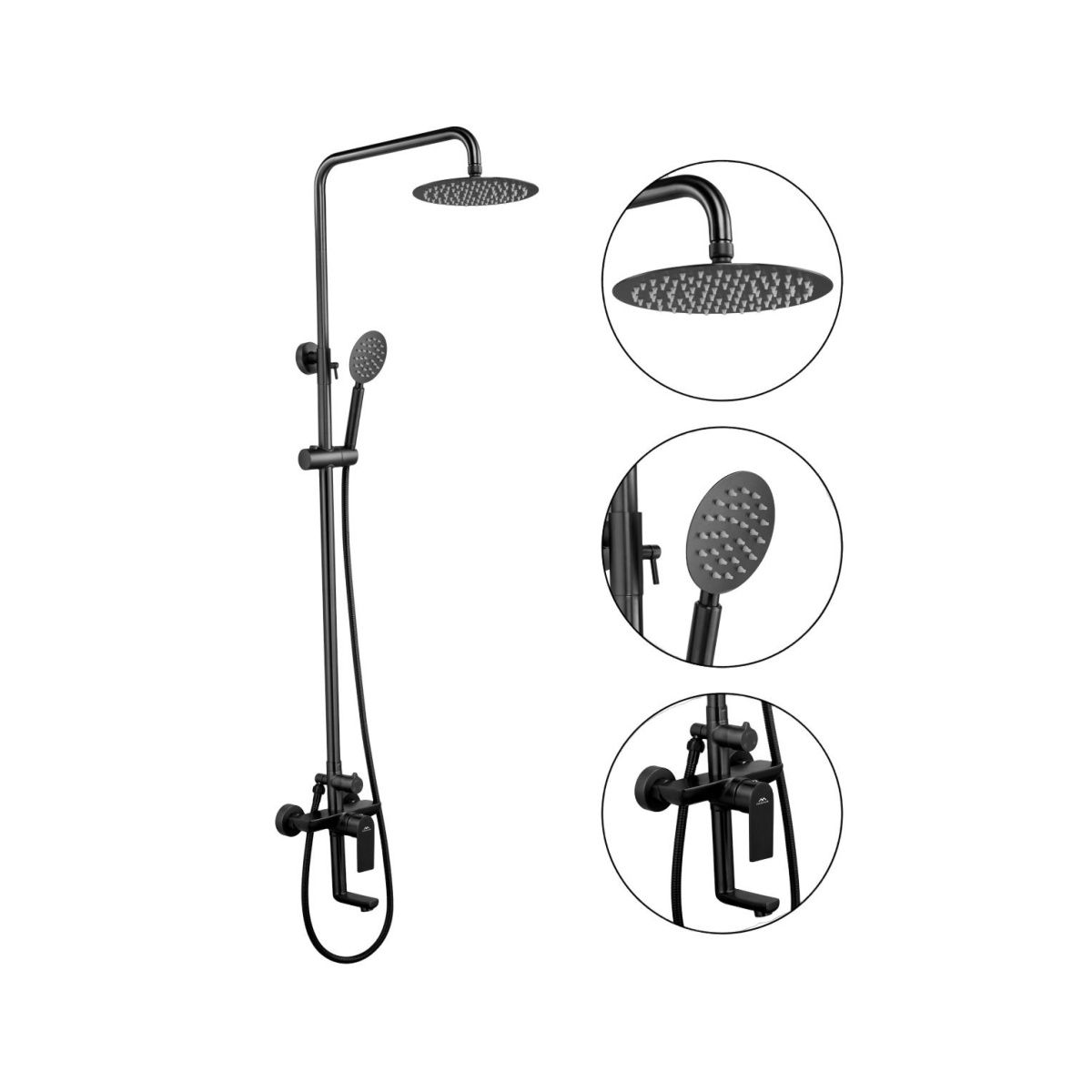 A52419-17 душевая стойка графит, PVD покрытие смеситель: сталь SUS304, , картридж D=35 мм излив: L=163 мм, поворотный дивертор: 3-х ходовой с керамическими пластинами установочный комплект + штанга: сталь SUS304, H=830-1410 мм, графит верхняя лейка: сталь SUS304, D=200 мм, графит ручная лейка: сталь SUS304, D=96 мм, графит шланг: 1500 мм, оплётка сталь SUS304, графит