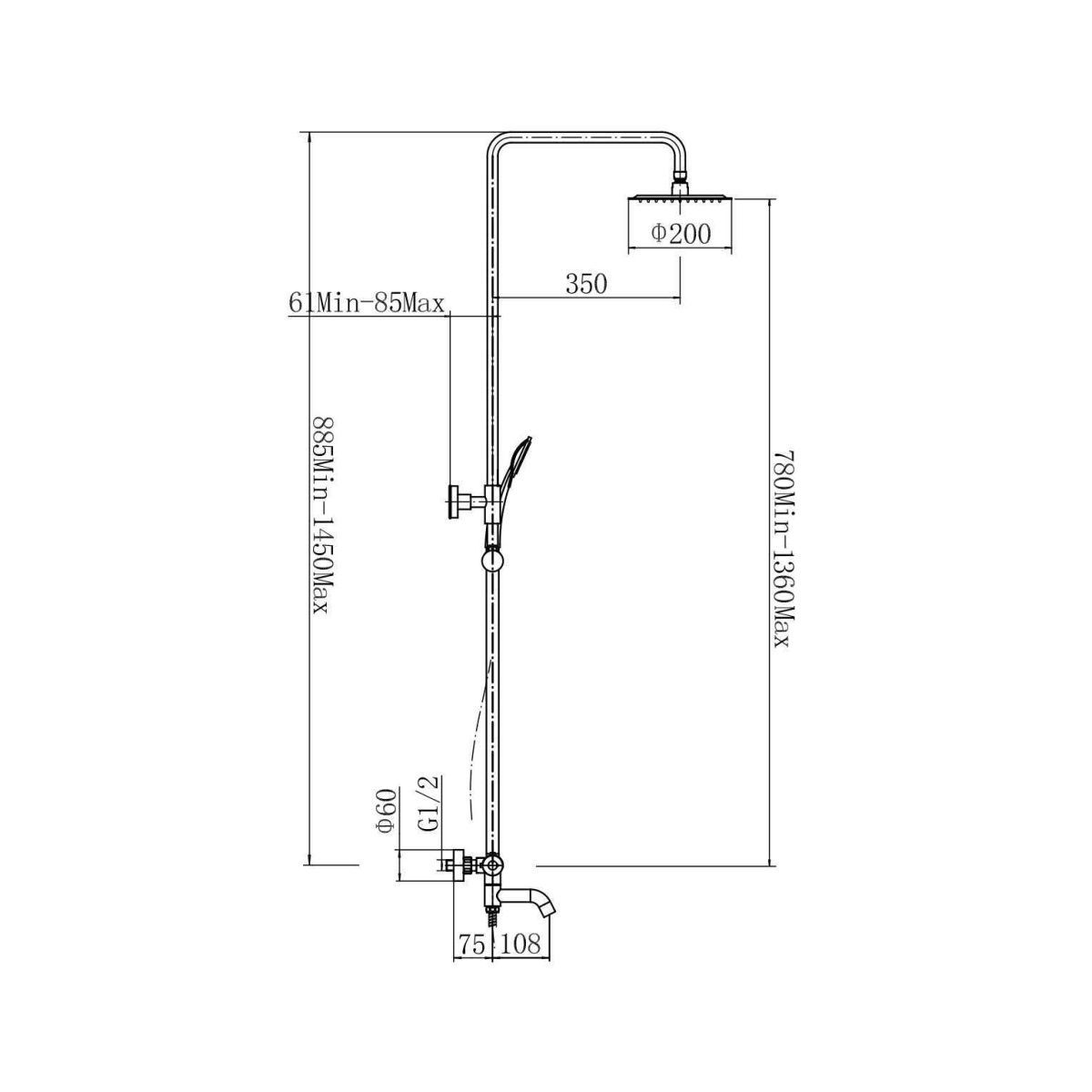 Вылет верхнего душа, см