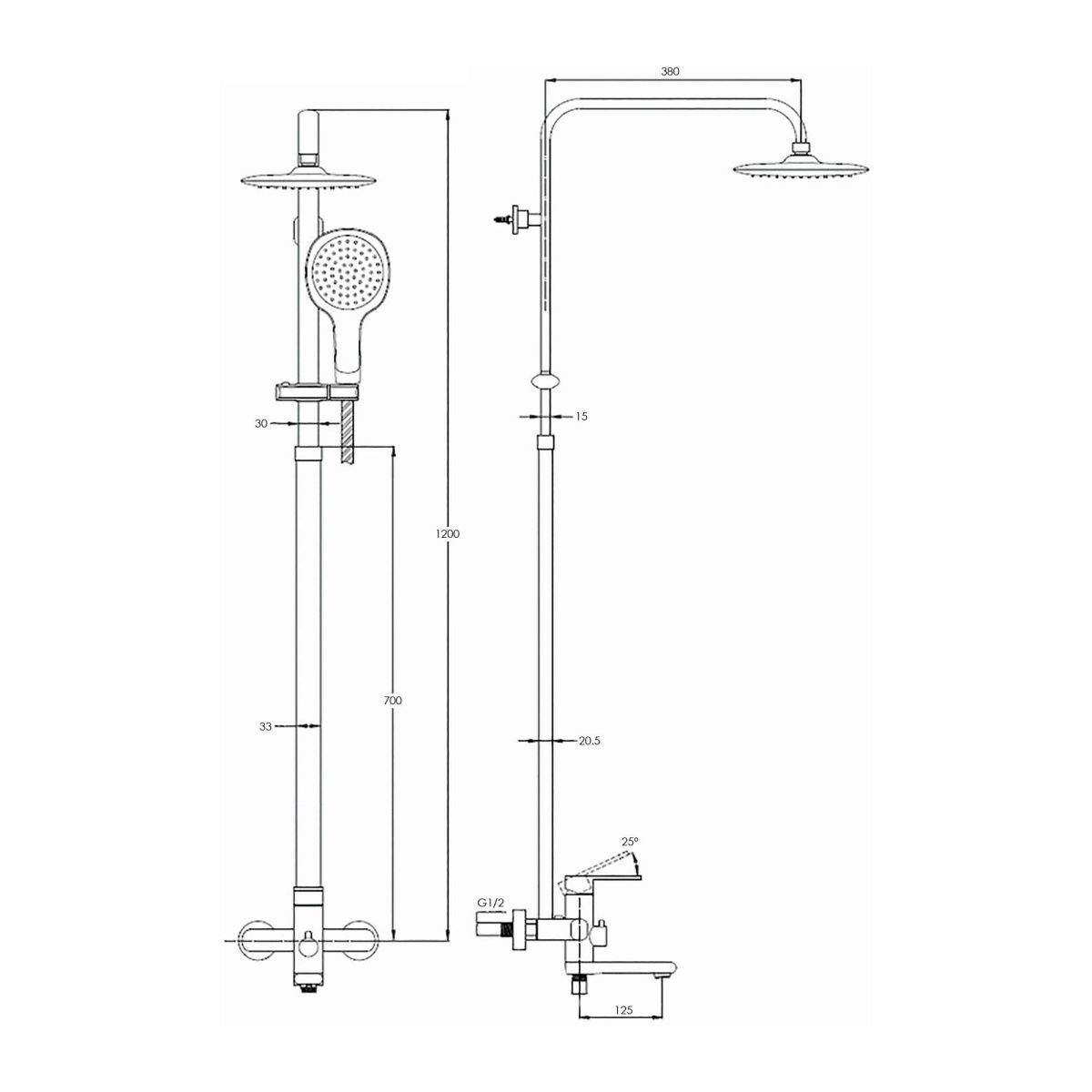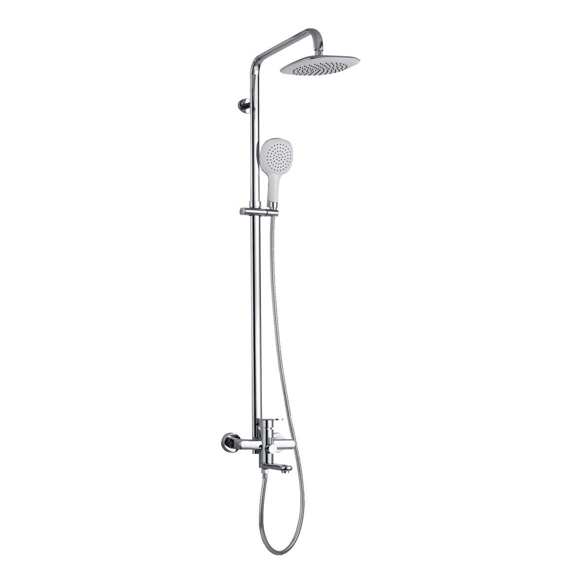 смеситель, душевая штанга, верхний душ, душевая лейка, шланг, декоративные отражатели, эксцентрики