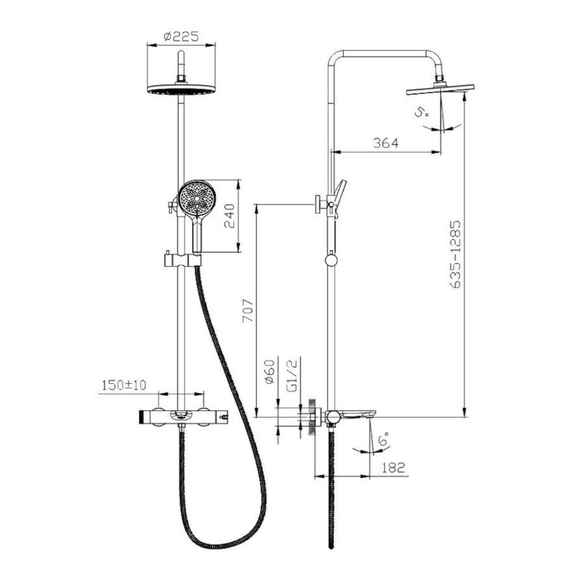 Душевая система Raglo R32.24. Цвет: хром. Материал: латунь. Управление: однорычажное. Механизм: керамический картридж. Излив: фиксированный. Аэратор. Регулируемая по высоте душевая штанга: 635-1285 мм. Форма верхнего душа: круглая. Диаметр верхнего душа: 225 мм. Регулируемый по высоте держатель ручного душа. Высота ручного душа: 240 мм. Количество режимов струи ручного душа: 3. Переключение режимов ручного душа: флажковое. Отверстия для монтажа: 3. Стандарт подводки: G 1/2. Монтаж: на стену. Керамический картридж 35мм - R500.35. Переключатель с керамическими пластинами (угол поворота – 360°) - R505.01. Аэратор - R540.02. Душевой шланг 1.5м - R402.15.