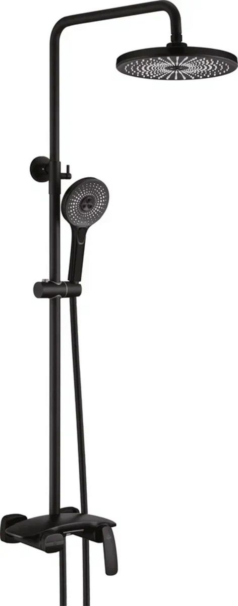Душевая система с каскадным изливом Rose R1136H, черный. Монтаж: настенный. Стилистика дизайна: современный стиль. Управление: рычажное. Размер верхнего душа: 25x25. Форма верхнего душа: круглая.