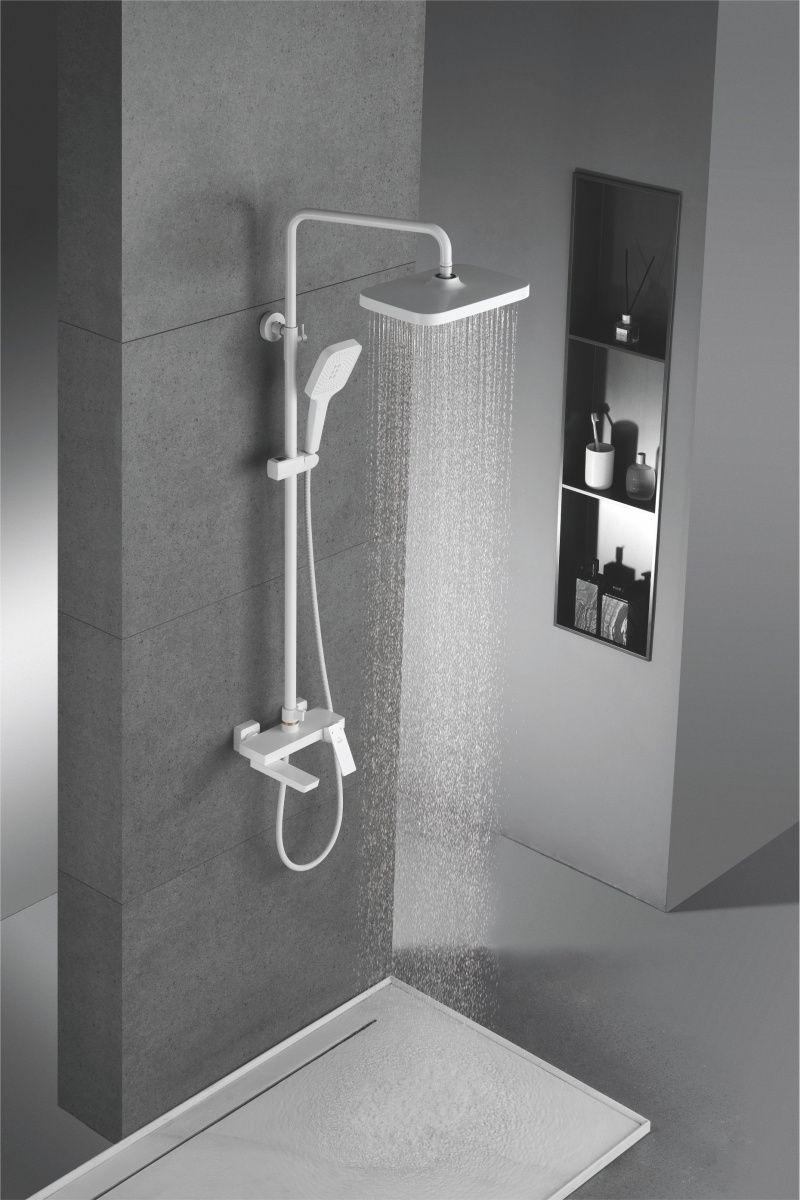 Душевая система Rose R1836C, белый. Монтаж: настенный. Стилистика дизайна: современный стиль. Управление: рычажное. Размер верхнего душа: 31,5x21. Форма верхнего душа: прямоугольная.