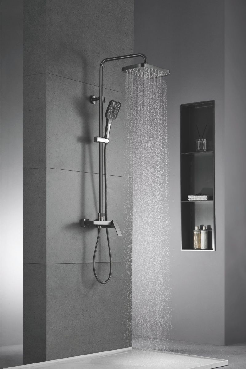 Душевая система Rose R1836T-6, пепельный. Монтаж: настенный. Стилистика дизайна: современный стиль. Управление: рычажное. Размер верхнего душа: 31,5x21. Форма верхнего душа: прямоугольная.