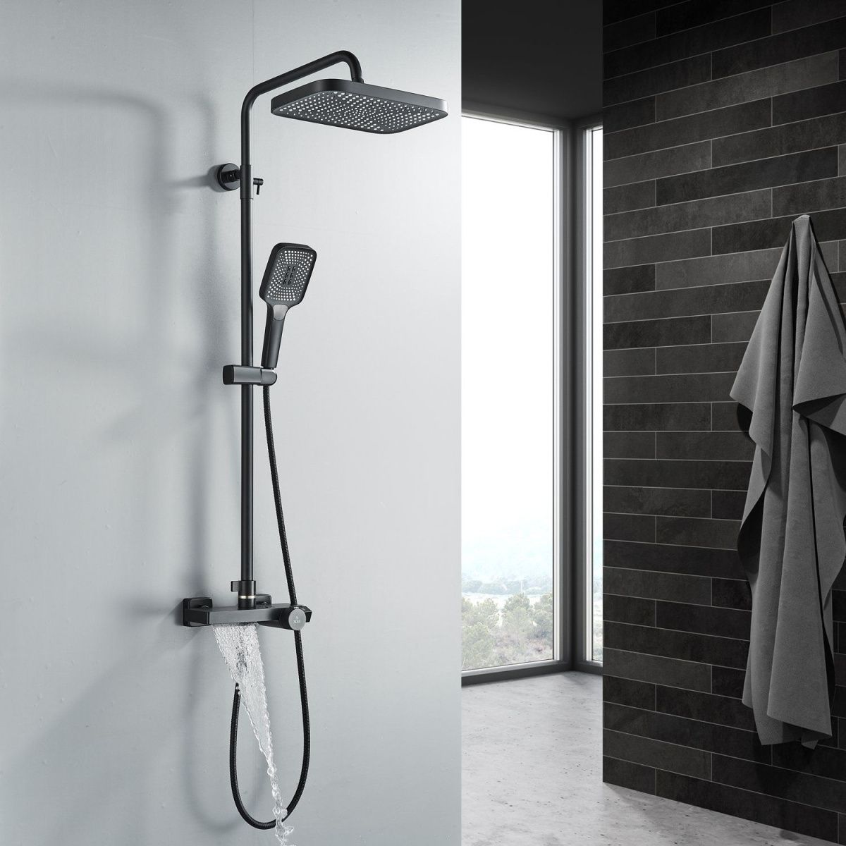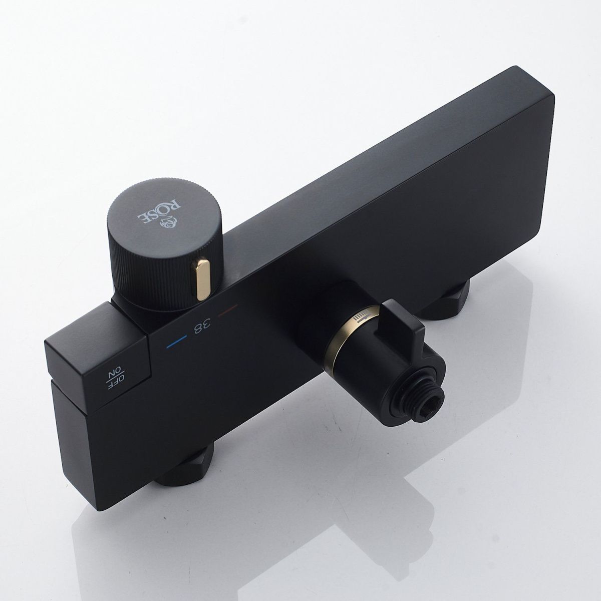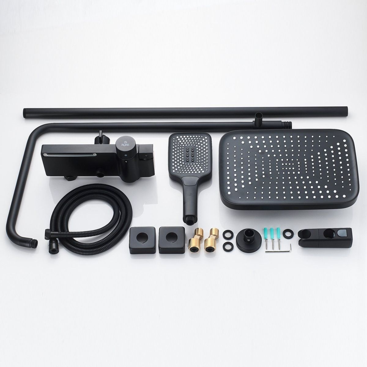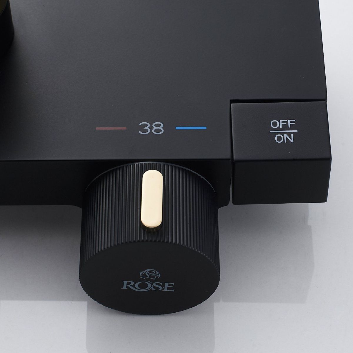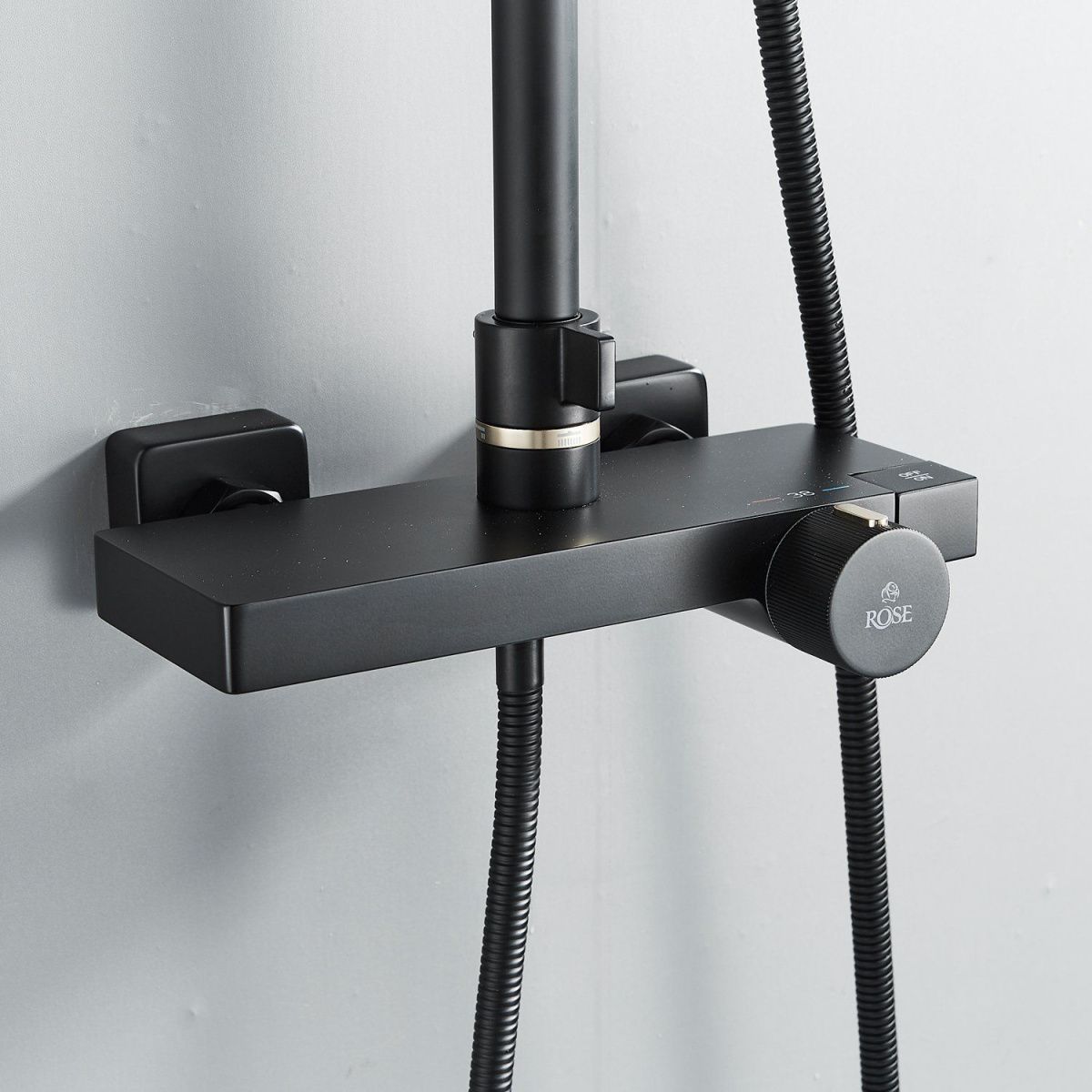 Душевая система с термостатом Rose R1896H-6, черный. Монтаж: настенный. Стилистика дизайна: современный стиль. Управление: термостат. Размер верхнего душа: 31,5x21. Форма верхнего душа: прямоугольная.