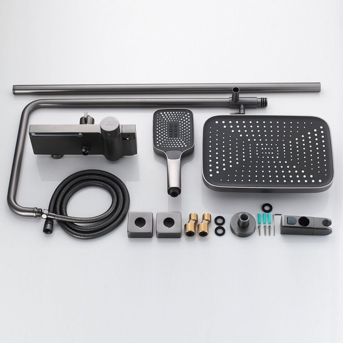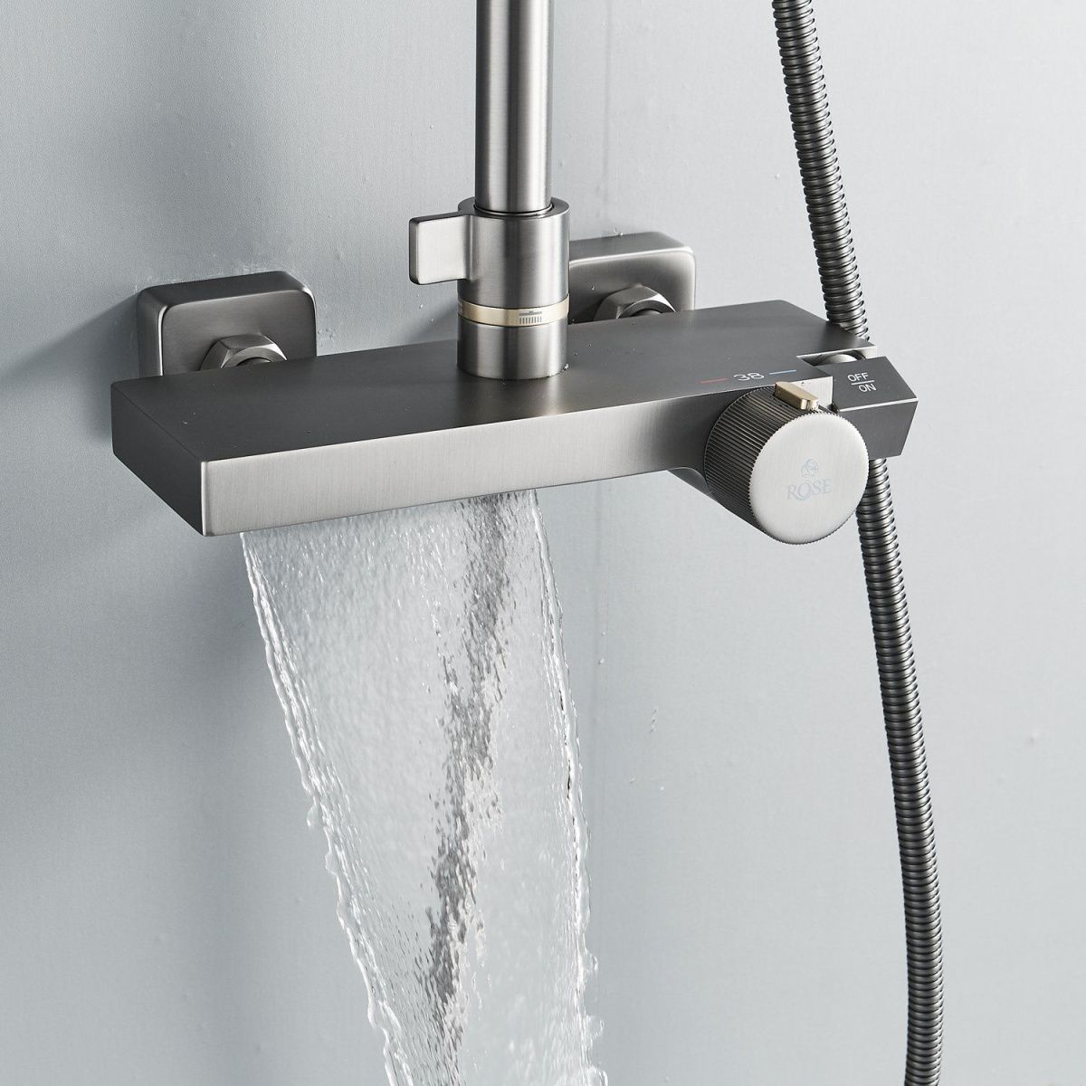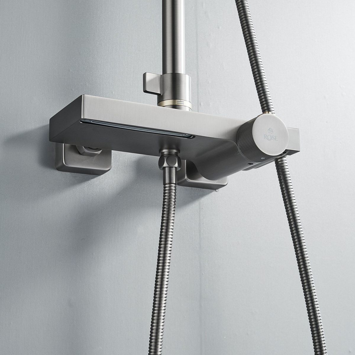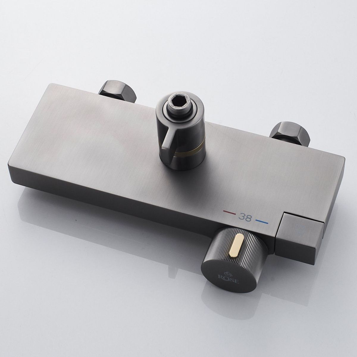Душевая система с термостатом Rose R1896T-6, пепельный. Монтаж: настенный. Стилистика дизайна: современный стиль. Управление: термостат. Размер верхнего душа: 31,5x21. Форма верхнего душа: прямоугольная.