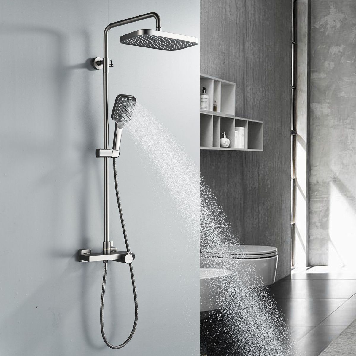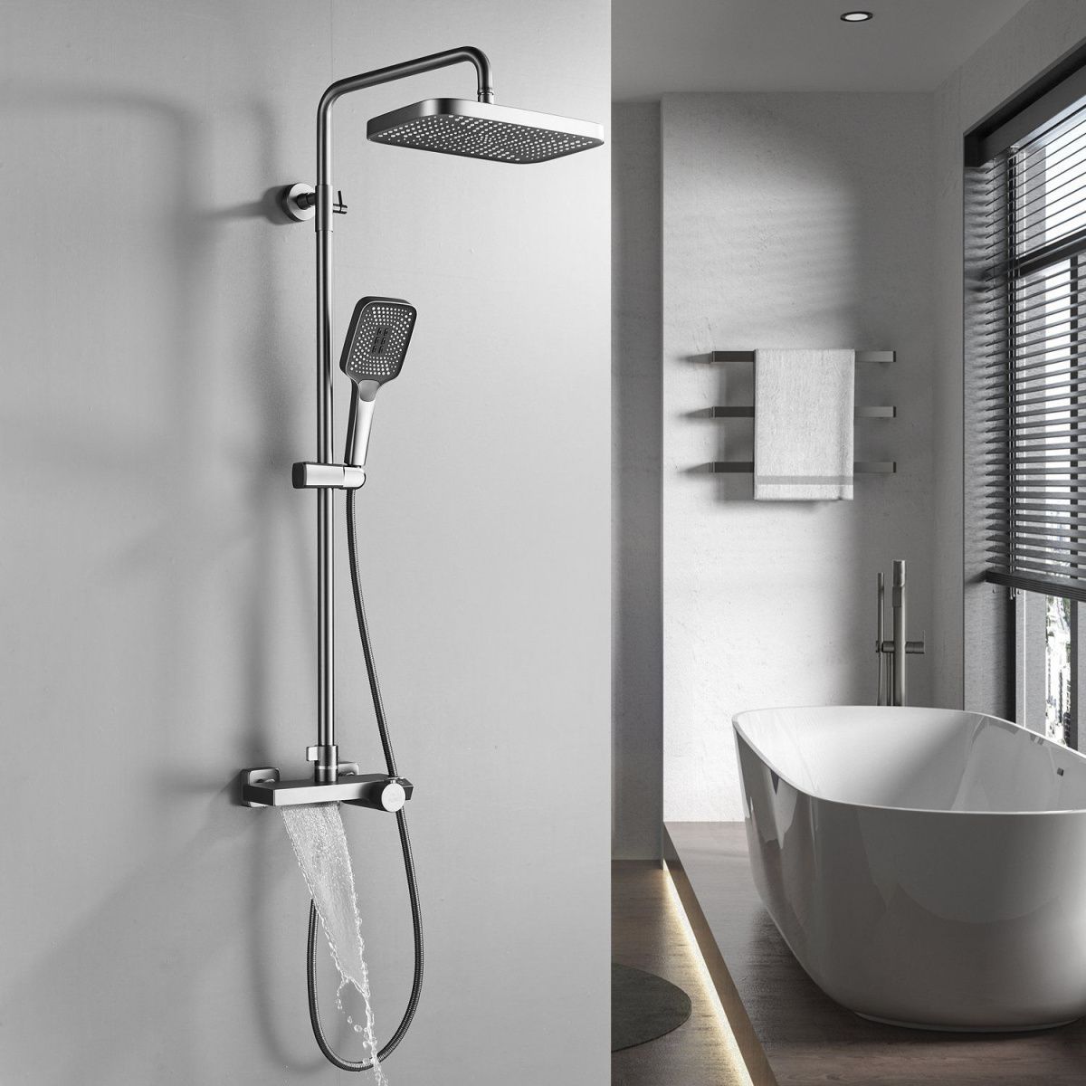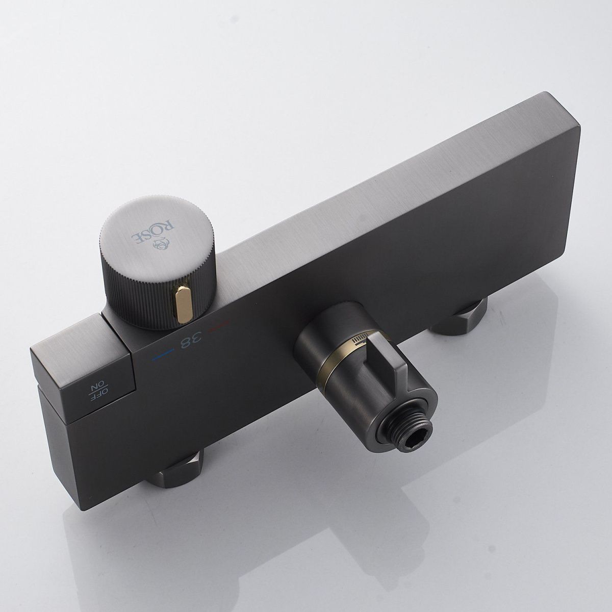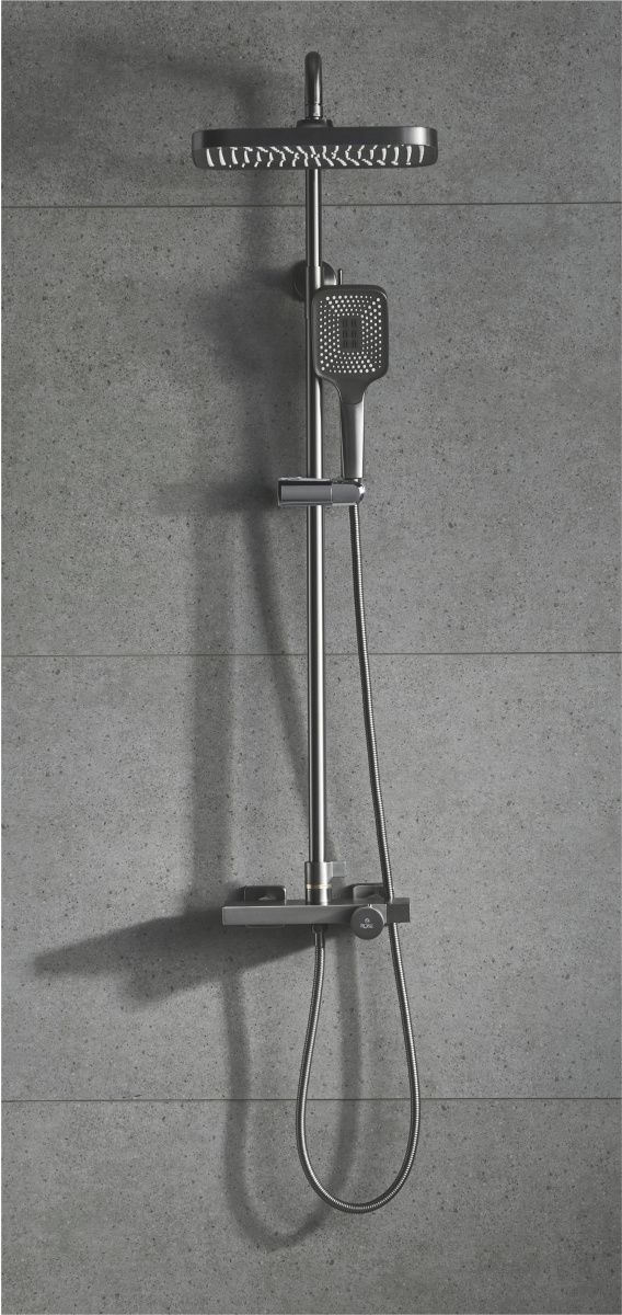 Душевая система с термостатом Rose R1896T-6, пепельный. Монтаж: настенный. Стилистика дизайна: современный стиль. Управление: термостат. Размер верхнего душа: 31,5x21. Форма верхнего душа: прямоугольная.
