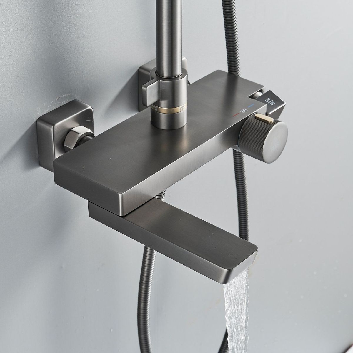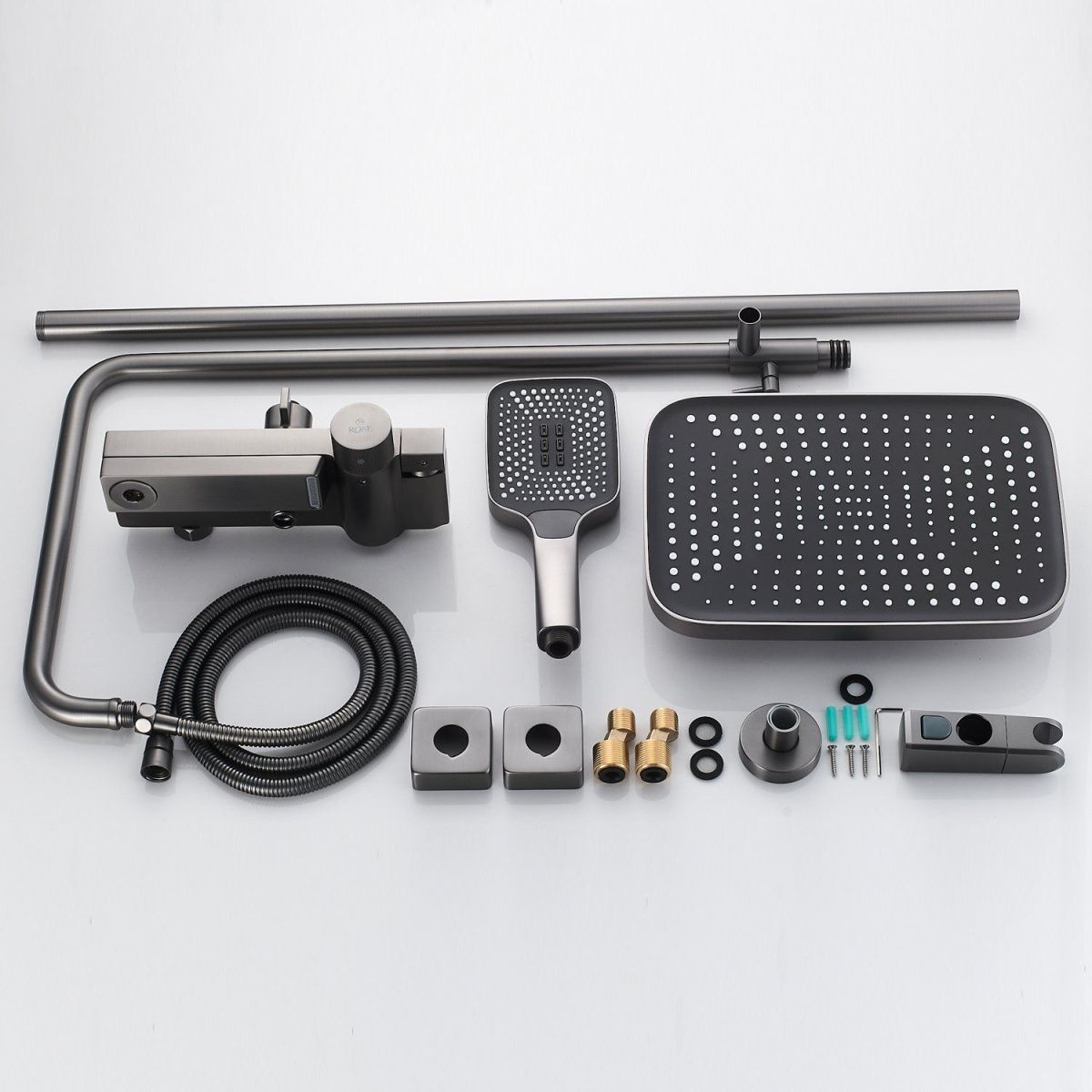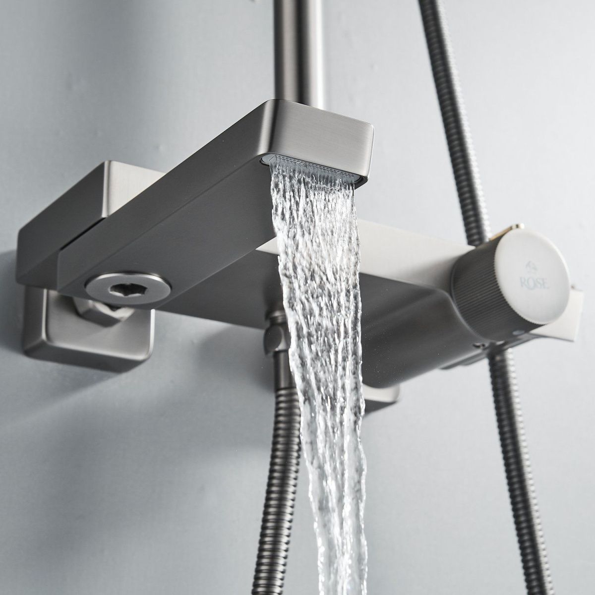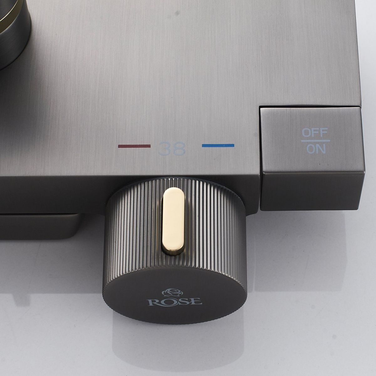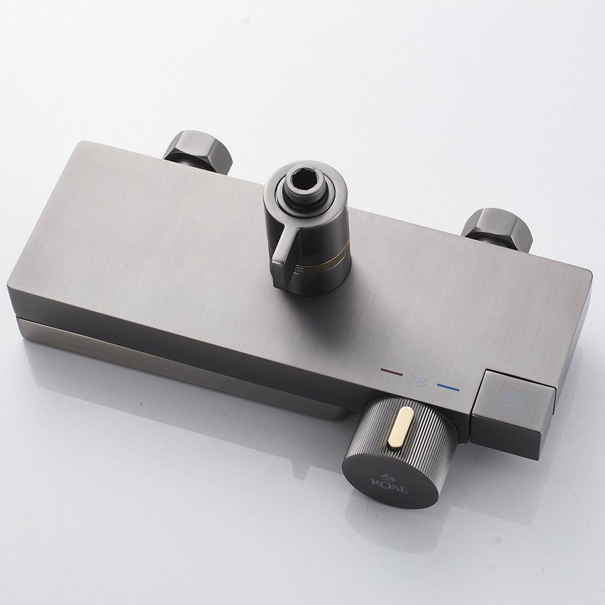 Душевая система с термостатом Rose R1896T, пепельный. Монтаж: настенный. Стилистика дизайна: современный стиль. Управление: термостат. Размер верхнего душа: 31,5x21. Форма верхнего душа: прямоугольная.