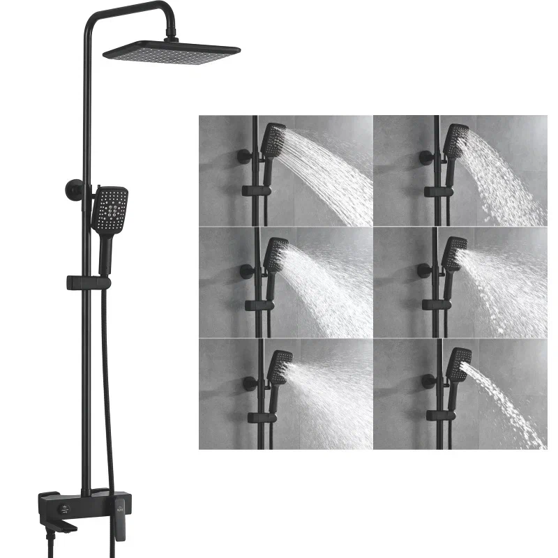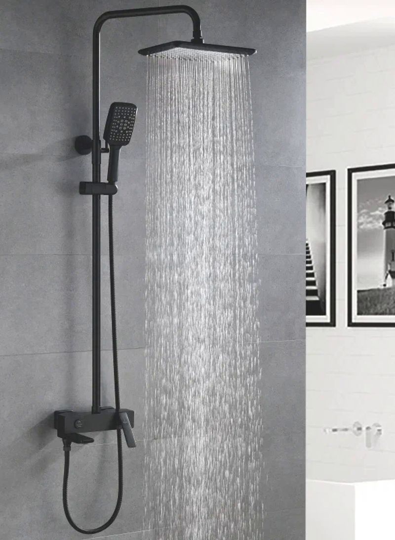 Душевая система Rose R2736H, черный. Монтаж: настенный. Стилистика дизайна: современный стиль. Управление: рычажное. Размер верхнего душа: 28x18. Форма верхнего душа: прямоугольная.