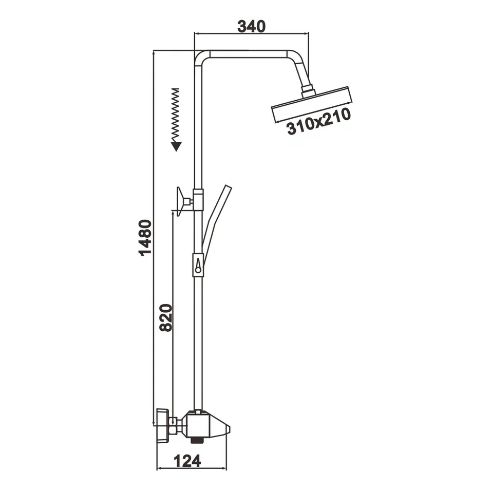смеситель, верхний душ, штанга с держателем душевой лейки, душевая лейка, шланг, эксцентрики