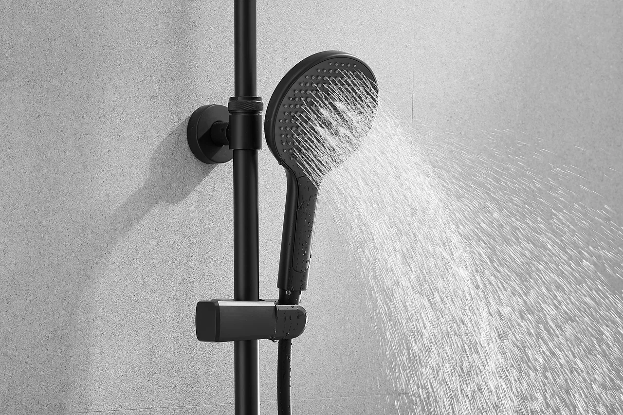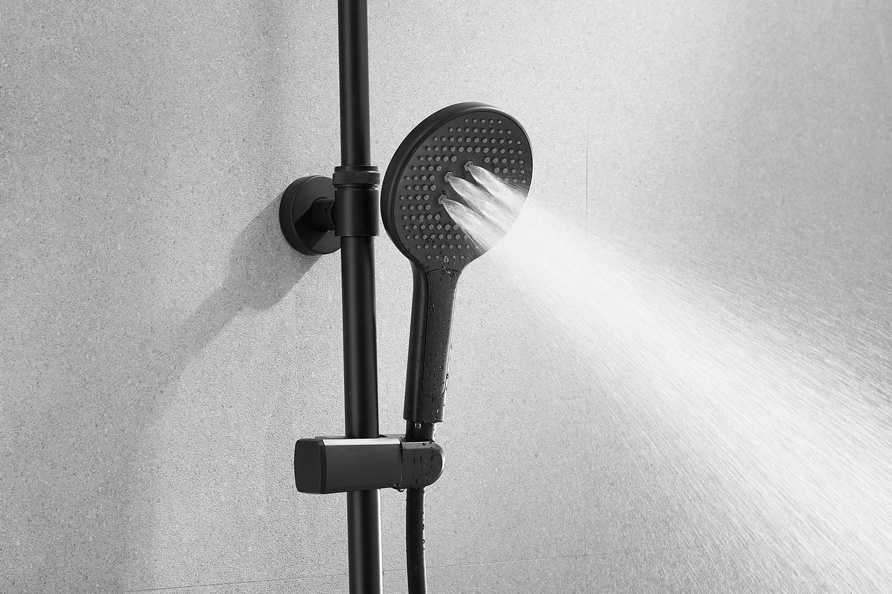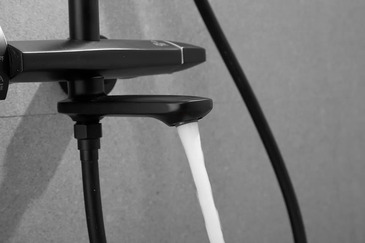Душевая система с термостатом Rose R3996H, черный. Монтаж: настенный. Стилистика дизайна: современный стиль. Управление: термостат. Размер верхнего душа: 25x25. Форма верхнего душа: круглая.