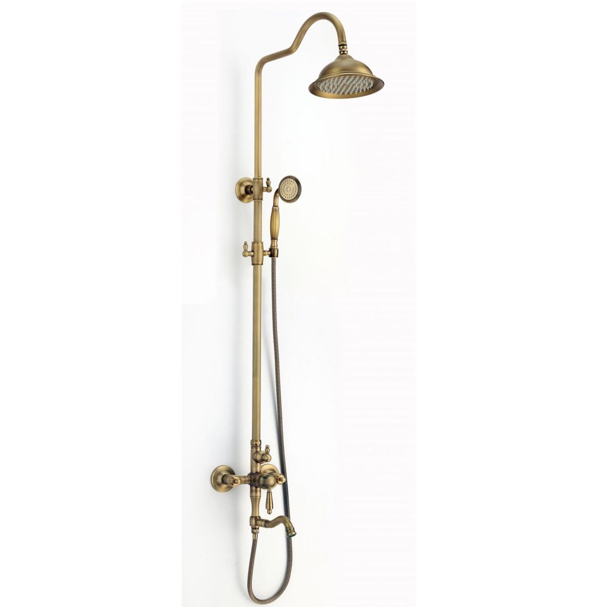 верхний душ, душевая штанга с держателем лейки, ручной душ, смеситель, шланг