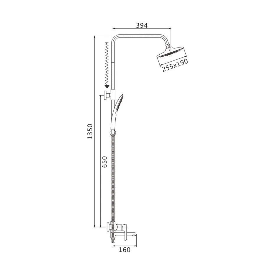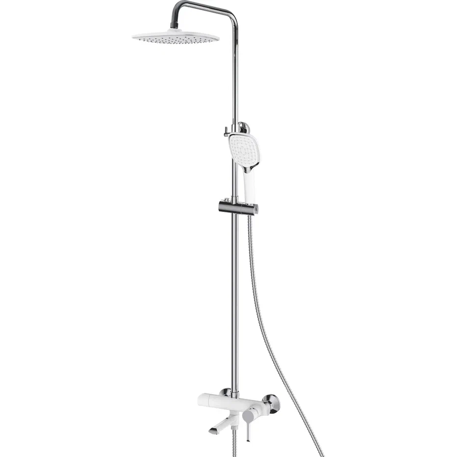 Душевая система Shevanik S6036F, белый/хром. Количество режимов струи: 1. Размер верхнего душа: 25,5x19 см. Управление: рычажное. Излив для наполнения ванны: да.