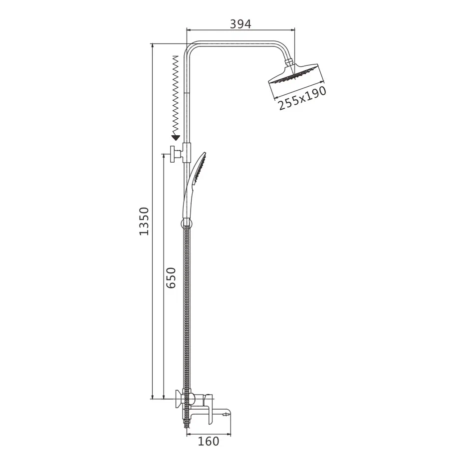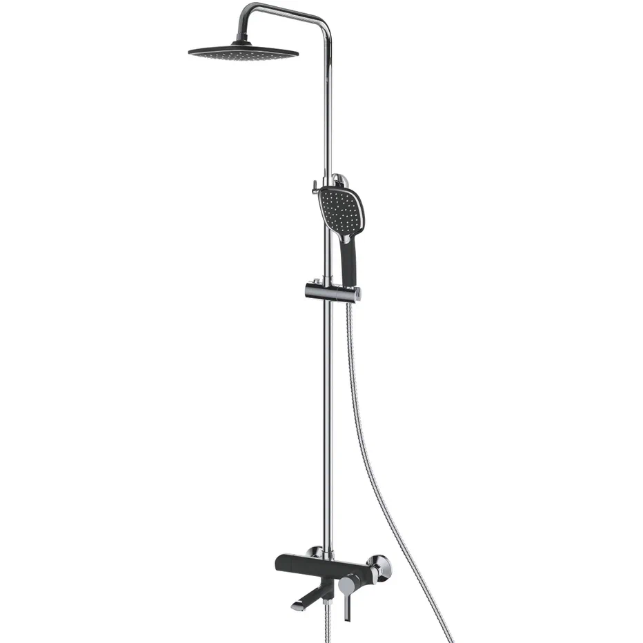 Душевая система Shevanik S6036H, черный/хром. Количество режимов струи: 1. Размер верхнего душа: 25,5x19 см. Управление: рычажное. Излив для наполнения ванны: да.