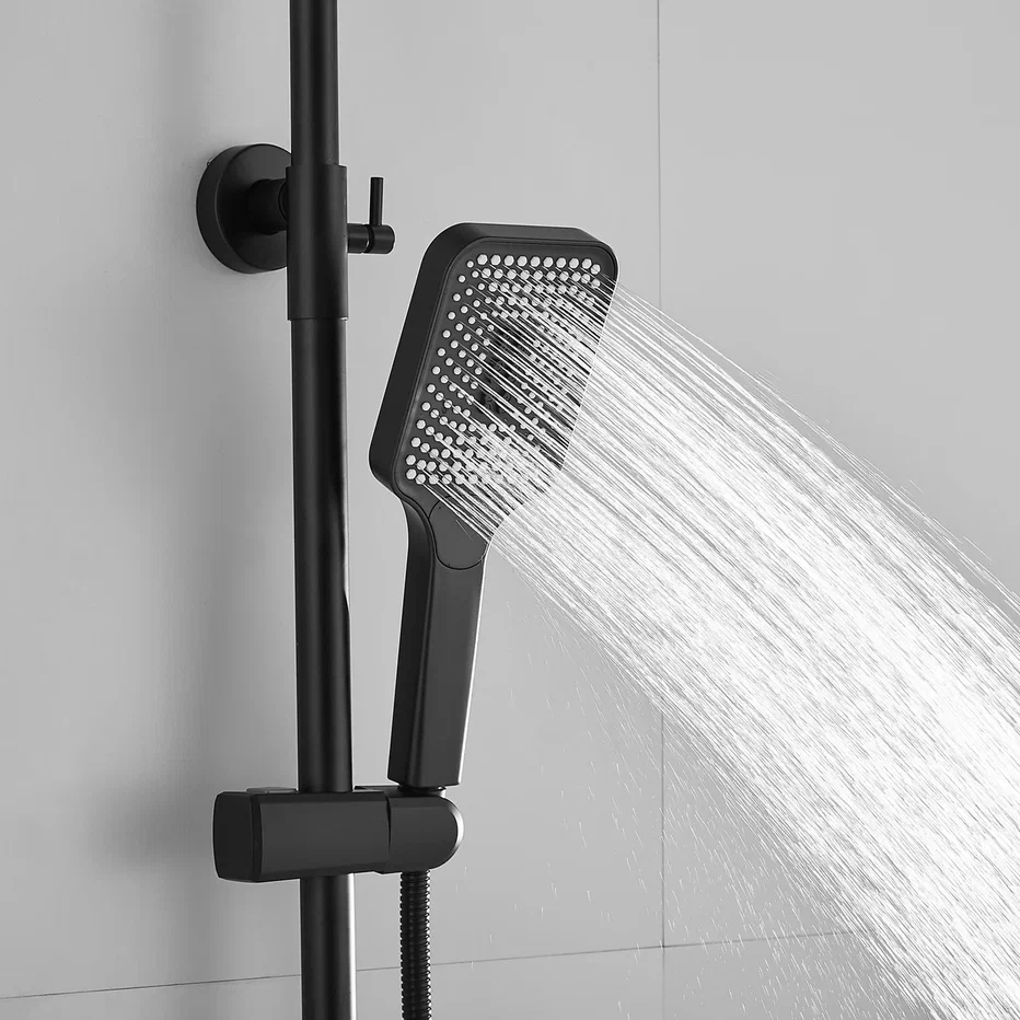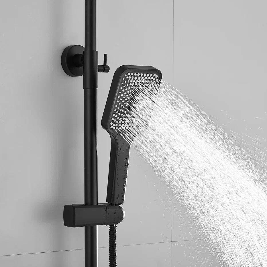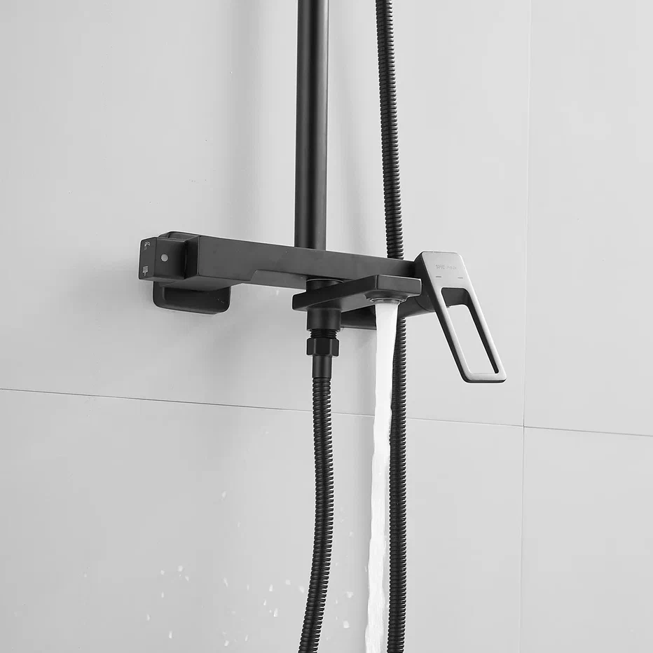 Душевая система Shevanik S6836H, черный. Количество режимов струи: 3. Размер верхнего душа: 31x21,5 см. Управление: рычажное. Излив для наполнения ванны: да.
