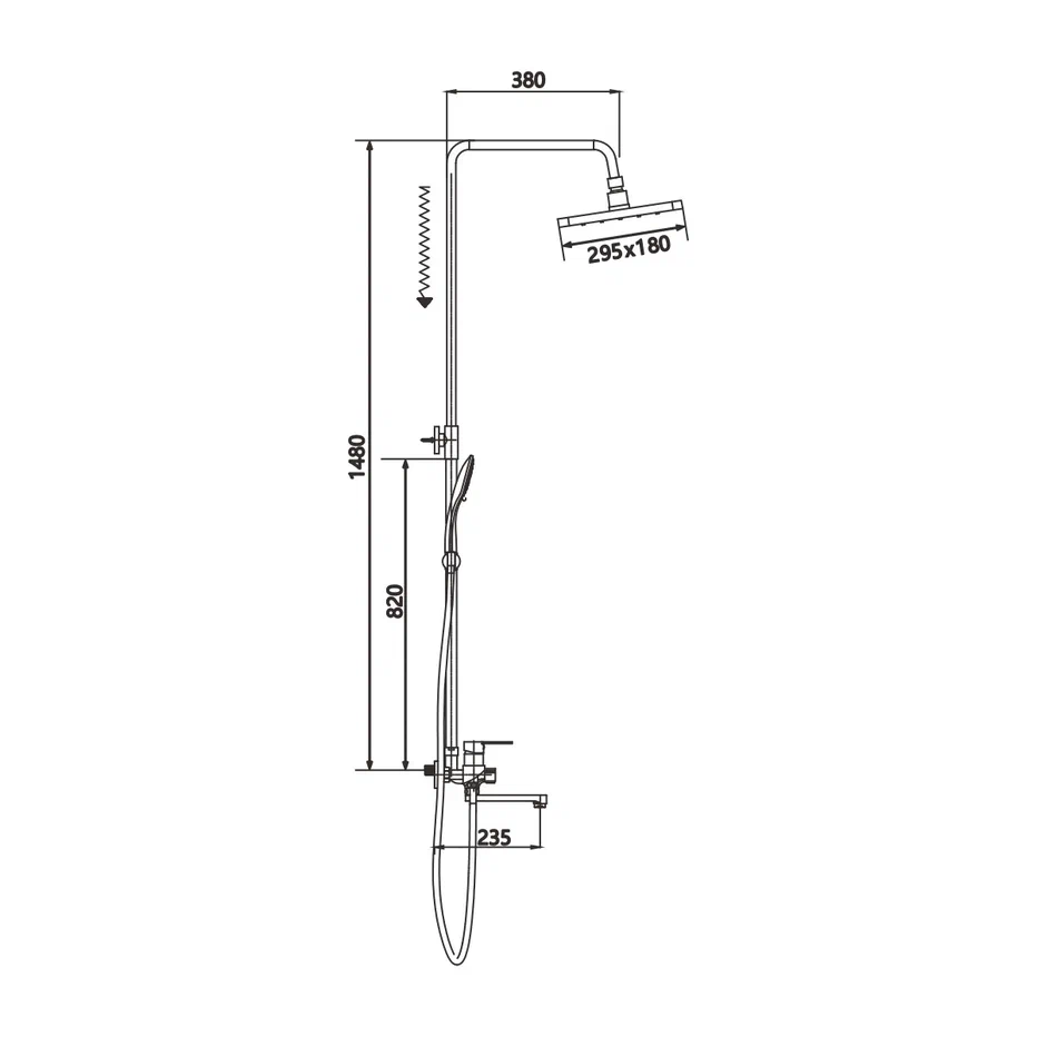 Душевая система Shevanik S8136, хром. Количество режимов струи: 3. Размер верхнего душа: 29,5x18 см. Управление: рычажное. Излив для наполнения ванны: да.