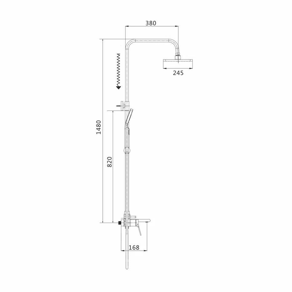 Душевая система Shevanik S8336, хром. Количество режимов струи: 3. Размер верхнего душа: 24,5x24,5 см. Управление: рычажное. Излив для наполнения ванны: да.