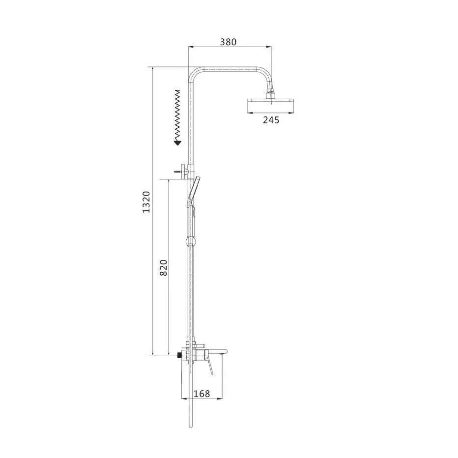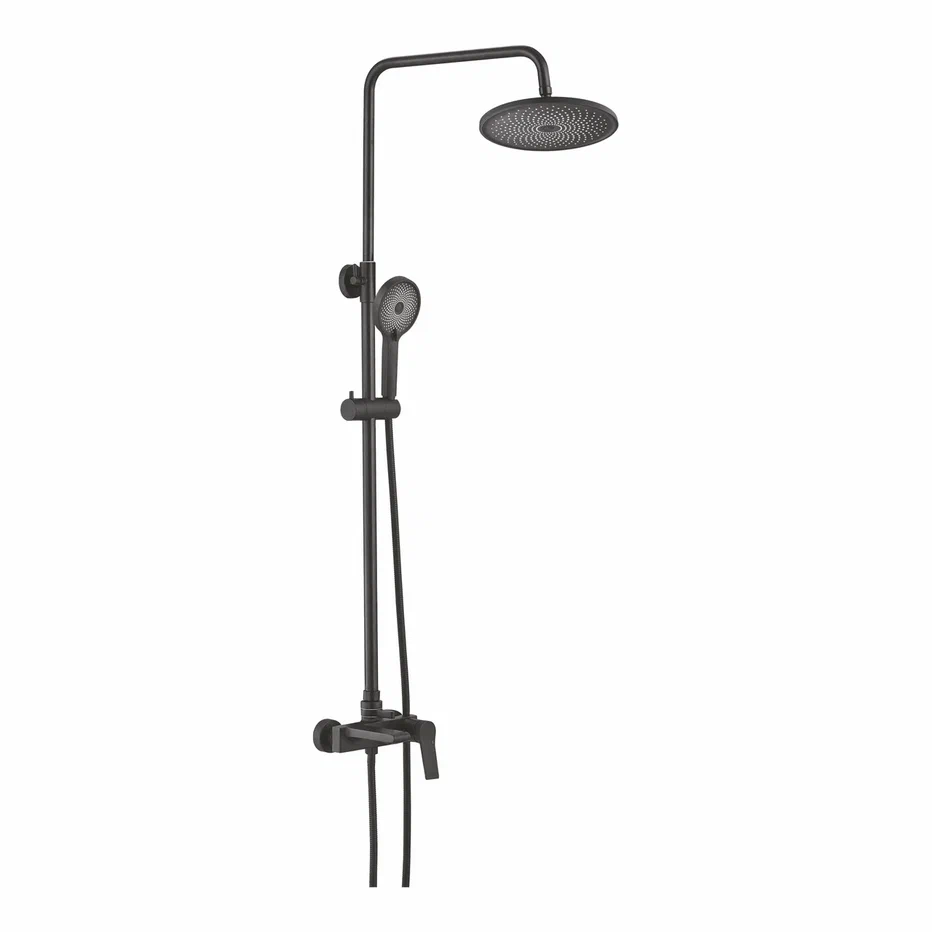 Душевая система Shevanik S8336H, черный. Количество режимов струи: 3. Размер верхнего душа: 24,5x24,5 см. Управление: рычажное. Излив для наполнения ванны: да.