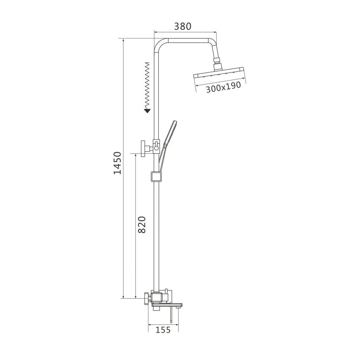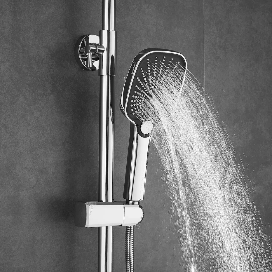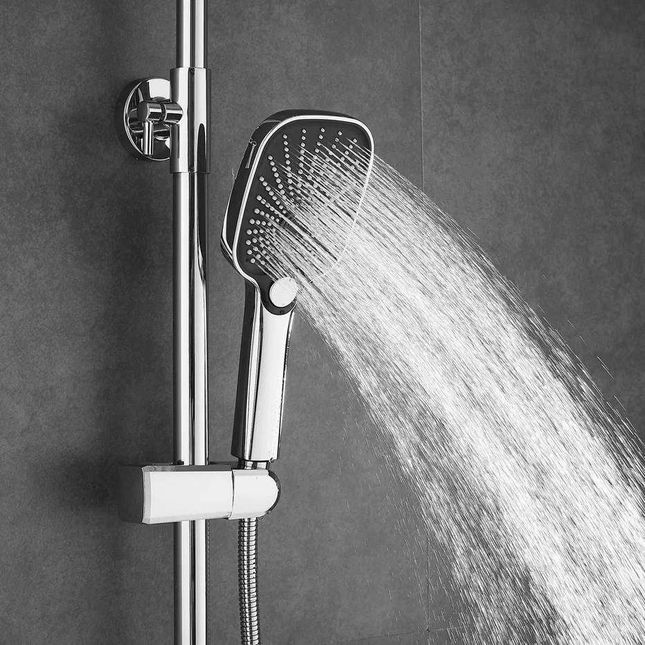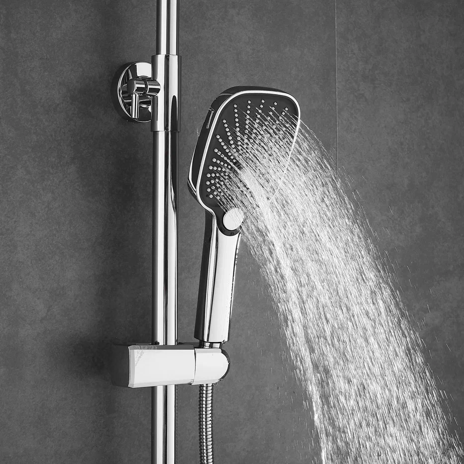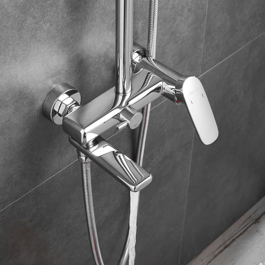 Душевая система Shevanik S8536, хром. Количество режимов струи: 3. Размер верхнего душа: 30x19 см. Управление: рычажное. Излив для наполнения ванны: да.