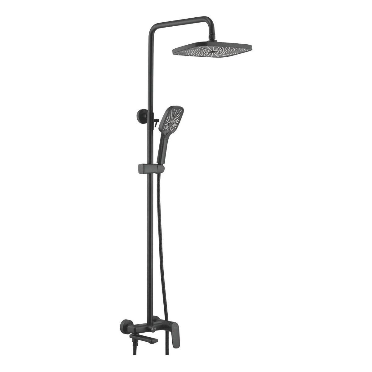 Душевая система Shevanik S8536H, черный. Количество режимов струи: 3. Размер верхнего душа: 30x19 см. Управление: рычажное. Излив для наполнения ванны: да.