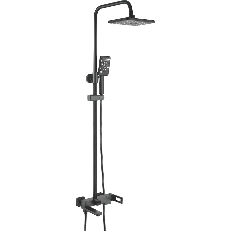 Душевая система Shevanik S9036H, черный. Количество режимов струи: 3. Размер верхнего душа: 28x19 см. Управление: рычажное. Излив для наполнения ванны: да.