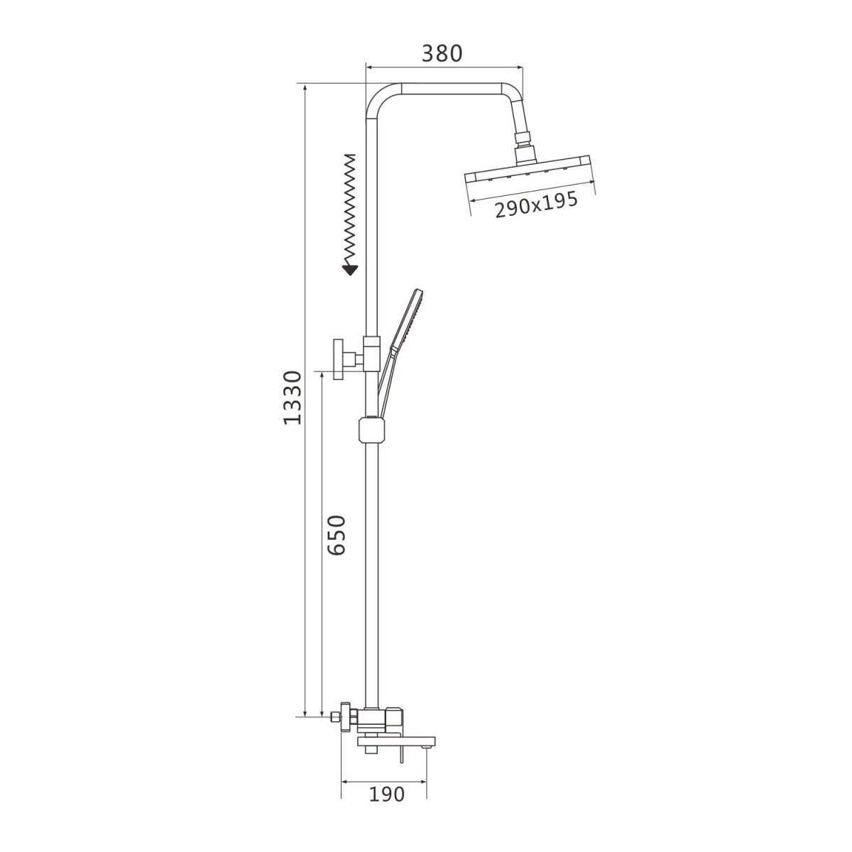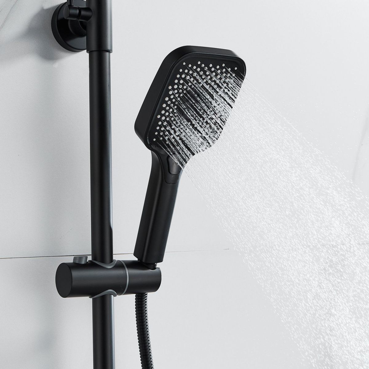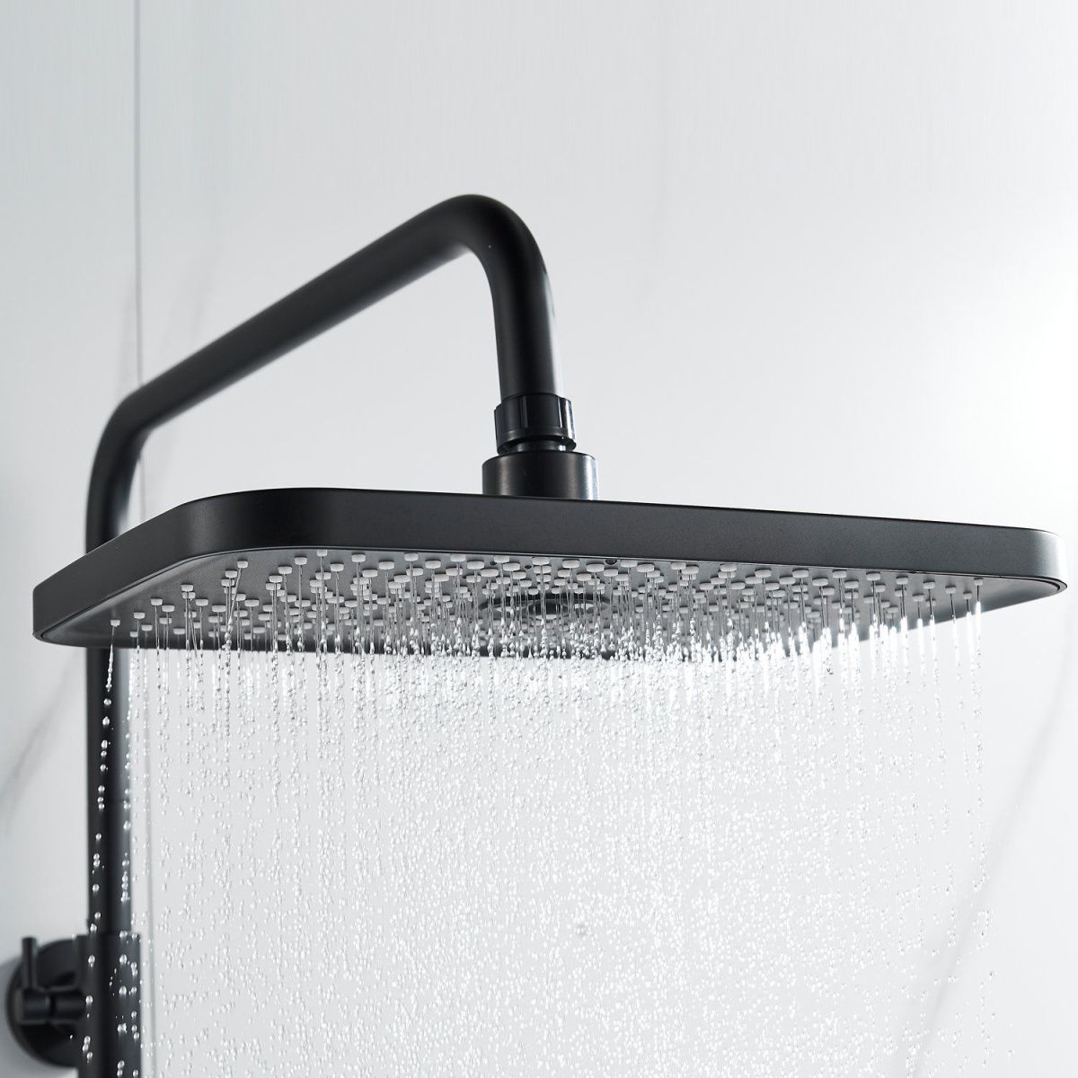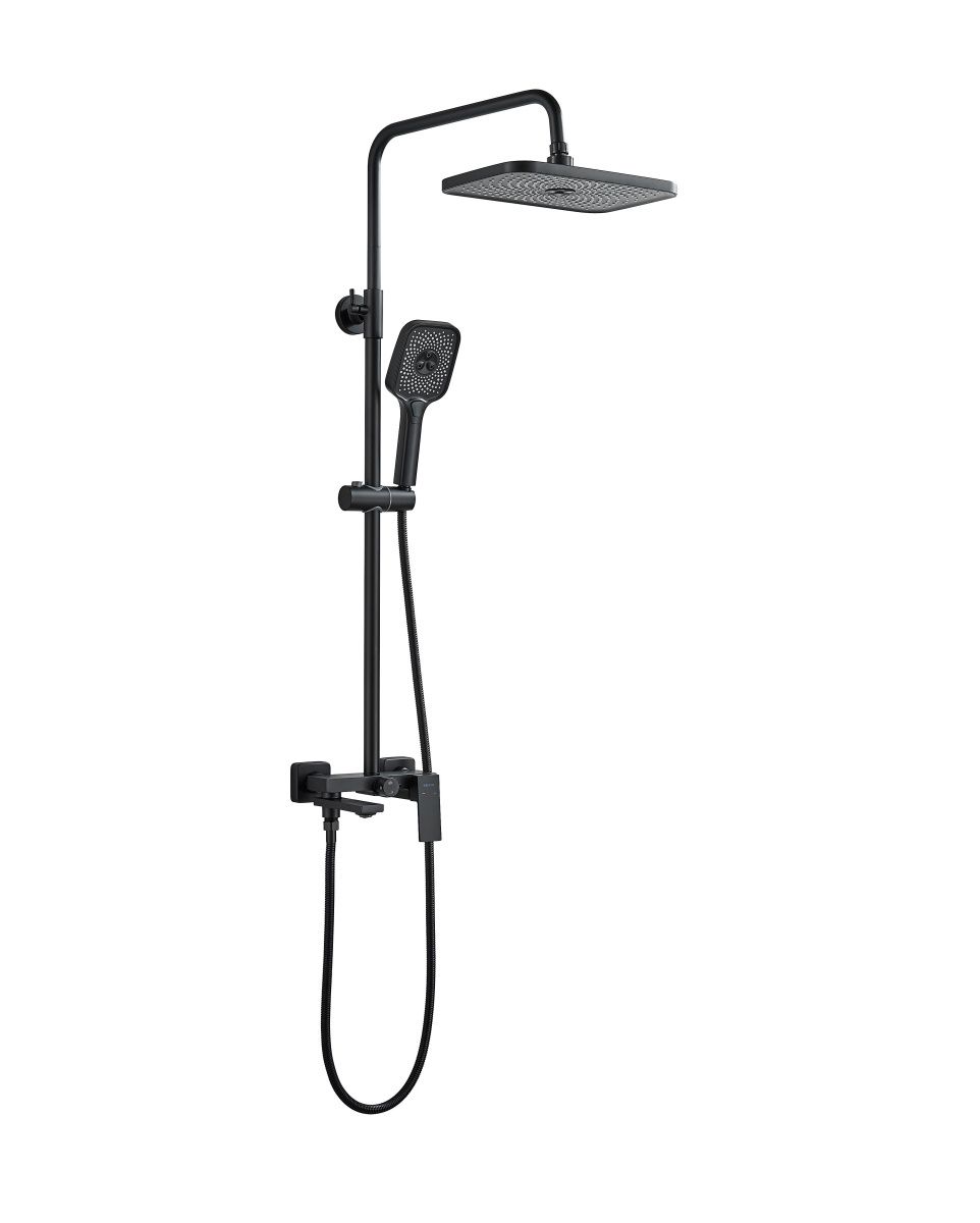Душевая система Shevanik S9636H, черный. Количество режимов струи: 3. Размер верхнего душа: 29x19,5 см. Управление: рычажное. Излив для наполнения ванны: да.