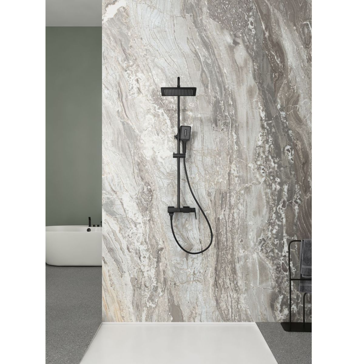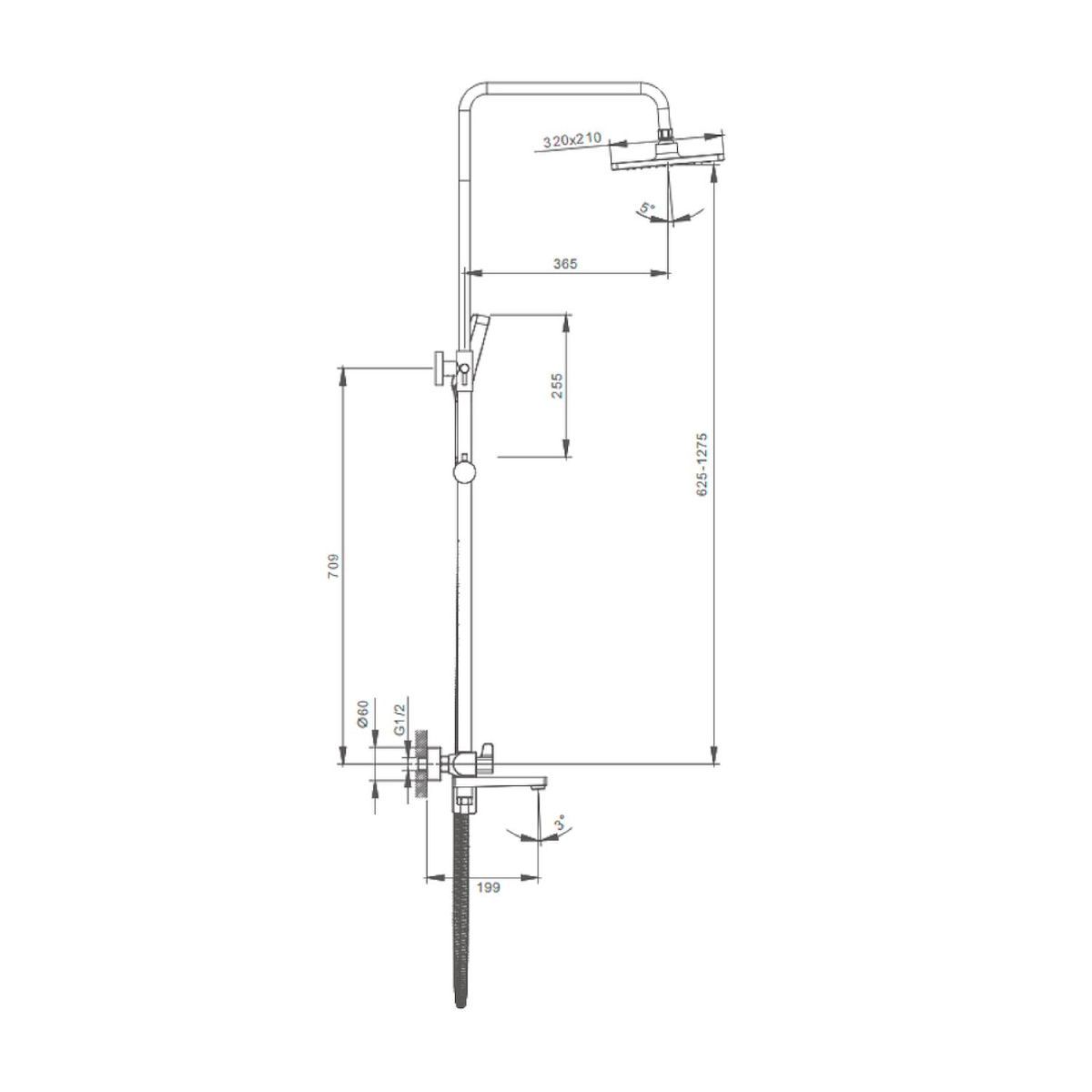 Душевая система Splenka S02.24.06. Цвет: черный. Материал: латунь. Управление: однорычажное. Механизм: керамический картридж. Излив: поворотный. Аэратор. Стандарт подводки: G 1/2. Форма верхнего душа: прямоугольная. Размер верхнего душа (ШхД): 320х210 мм. Количество режимов струи ручного душа: 3. Регулируемая душевая штанга: 625-1275 мм. Монтаж: на стену. Керамический картридж 35мм - S500.35. Переключатель с керамическими пластинами (угол поворота – 90°) - S501.526. Переключатель в изливе - S501.527. Излив - функция переключения. Аэратор - S540.721.06. Душевой шланг 1.5м - S403.15.06.