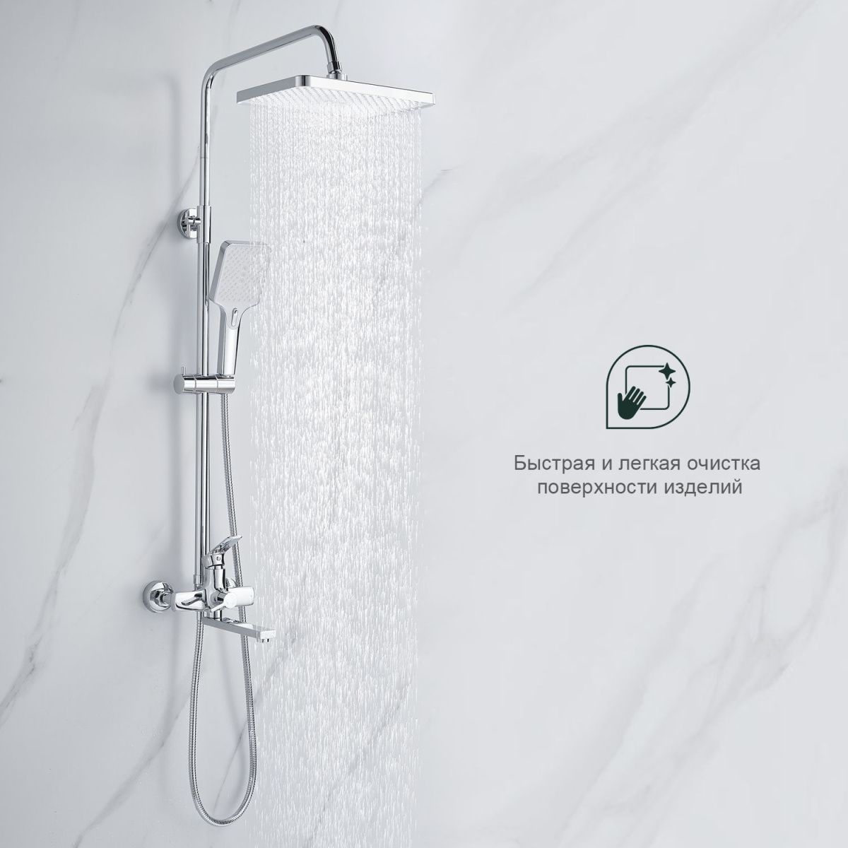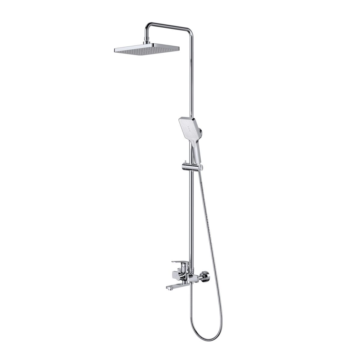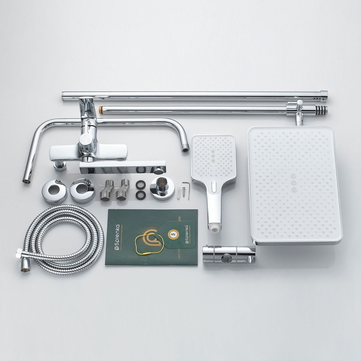 верхний душ, душевая штанга с держателем лейки, ручной душ, смеситель, шланг