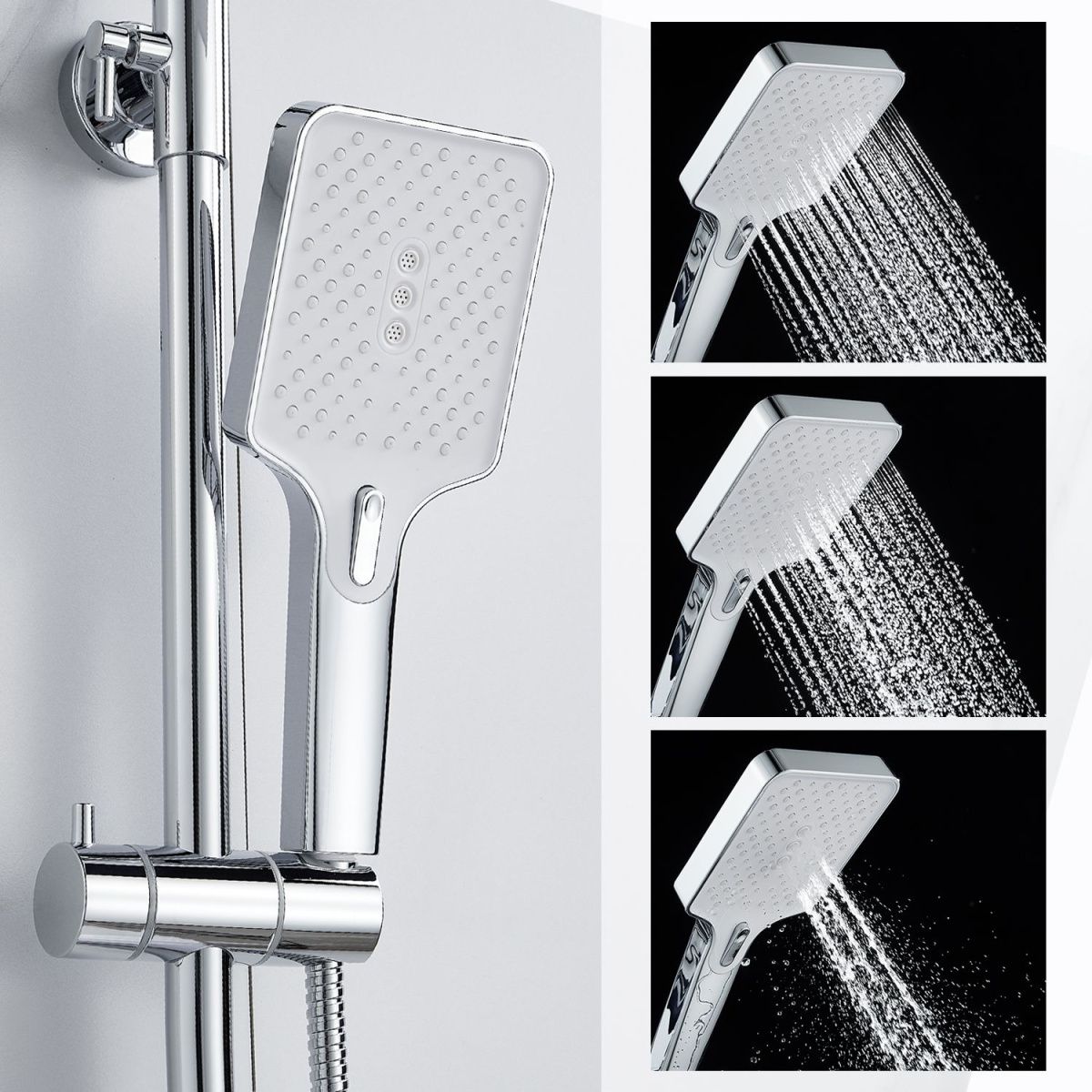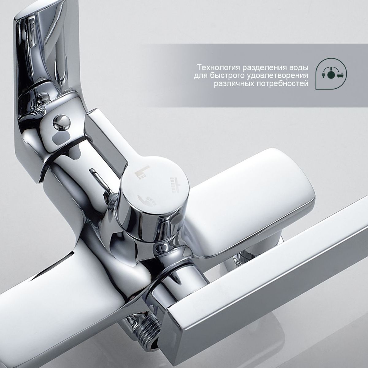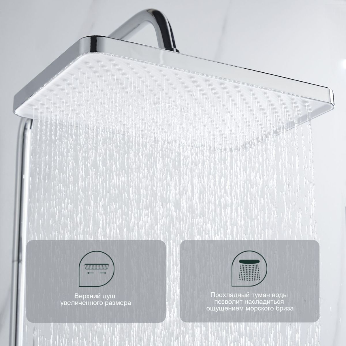 верхний душ, душевая штанга с держателем лейки, ручной душ, смеситель, шланг