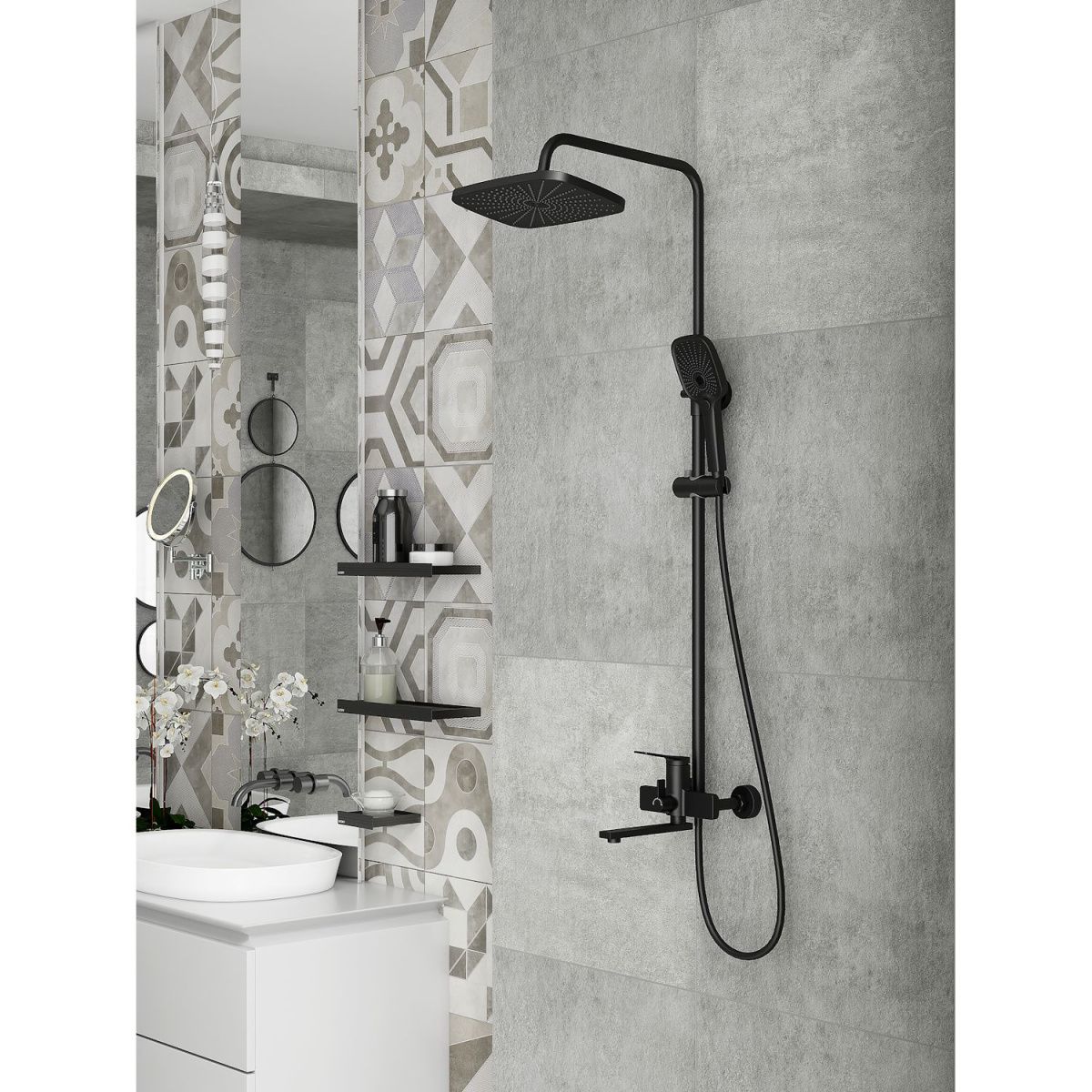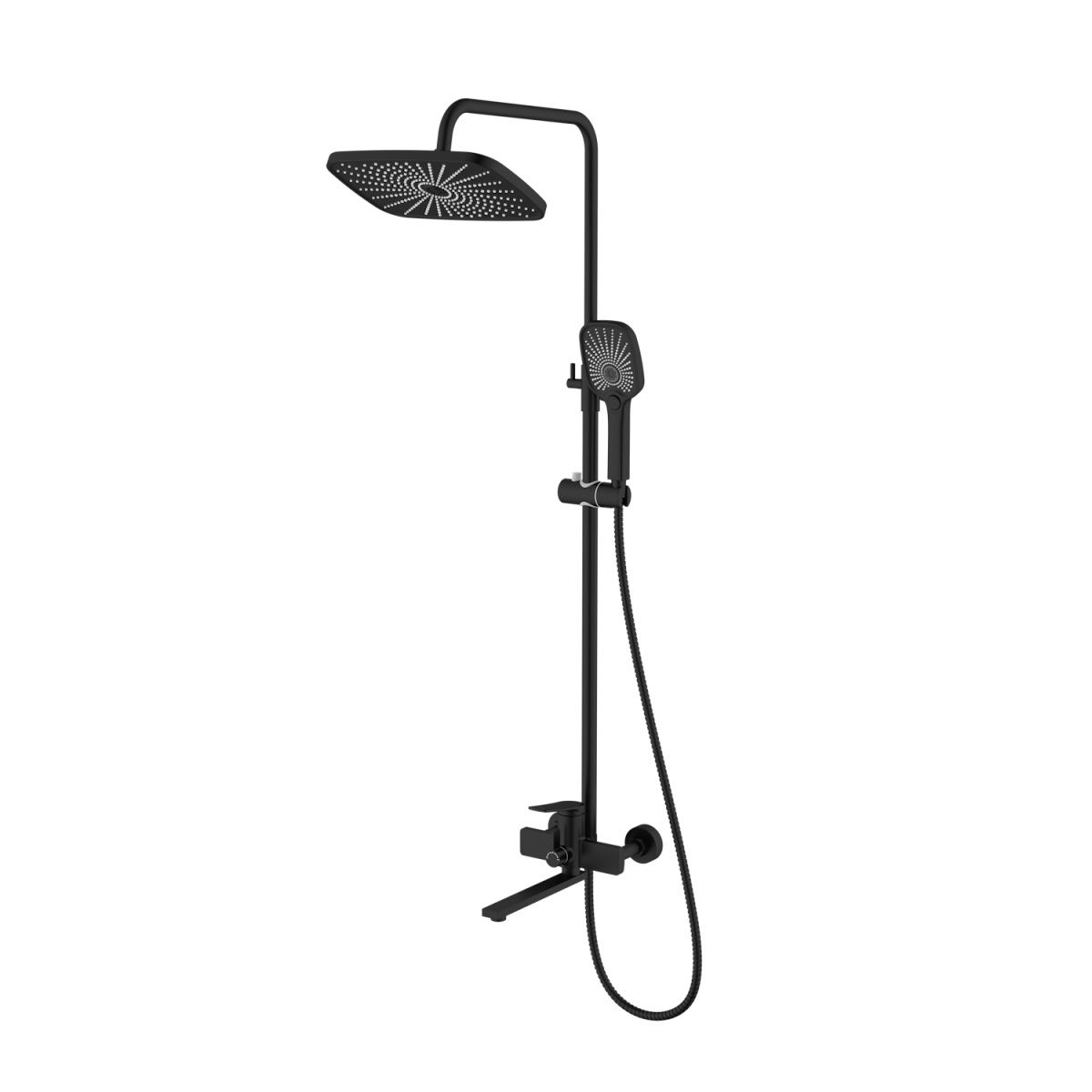 Душевая система Splenka S40.24.06. Цвет: черный. Материал: латунь. Управление: однорычажное. Механизм: керамический картридж. Излив: поворотный. Аэратор. Стандарт подводки: G 1/2. Форма верхнего душа: прямоугольная. Размер верхнего душа (ШхД): 300х190 мм. Количество режимов струи ручного душа: 3. Переключение режимов ручного душа: кнопочное. Регулируемая по высоте душевая штанга: 950-1350 мм. Регулируемый по высоте держатель ручного душа. Монтаж: на стену. Керамический картридж 30мм - S500.30. Переключатель с керамическими пластинами (угол поворота – 240°) - S501.36. Аэратор - S540.721.06. Душевой шланг 1.5м - S403.15.06.
