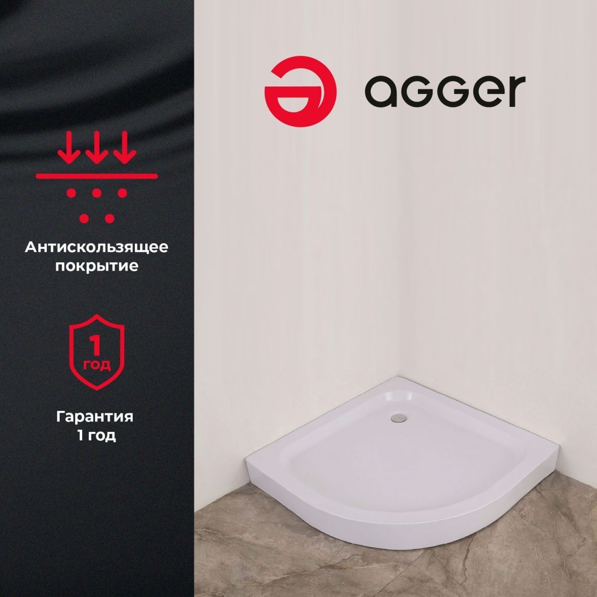 —Душевой поддон акриловый Agger A01-100TCR/T 100х100 белый с каркасом